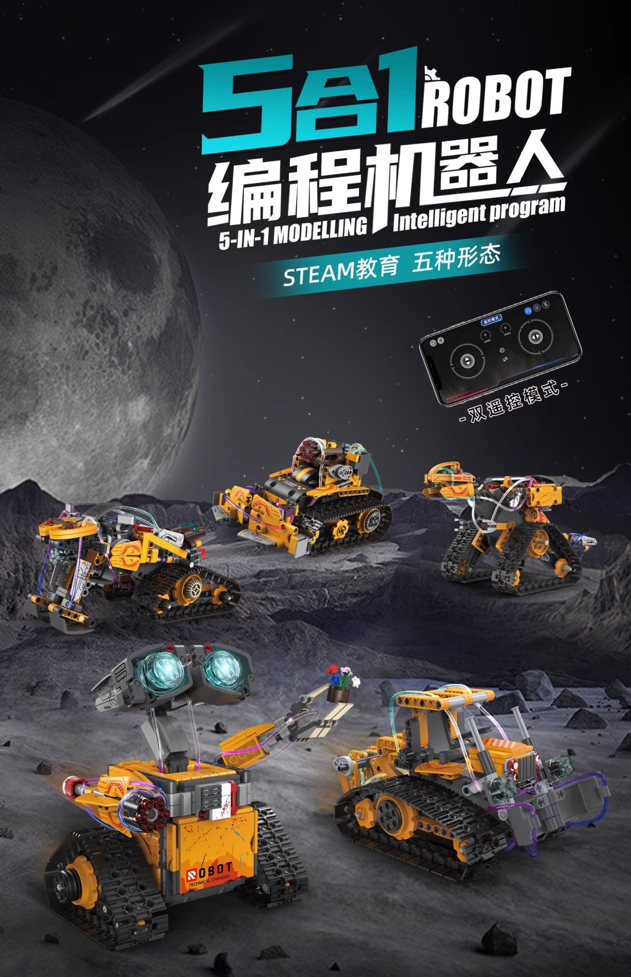 • 다섯 가지 변경 달 로봇 [리모컨 + APP 프로그래밍 처리]