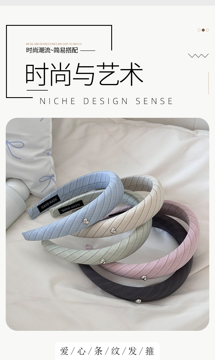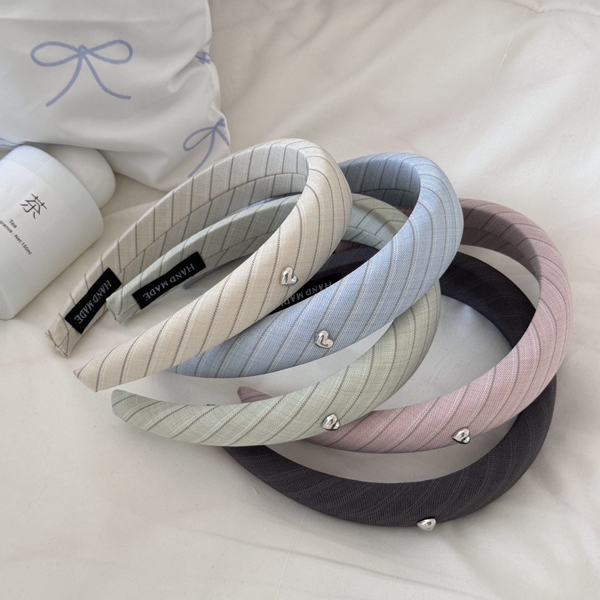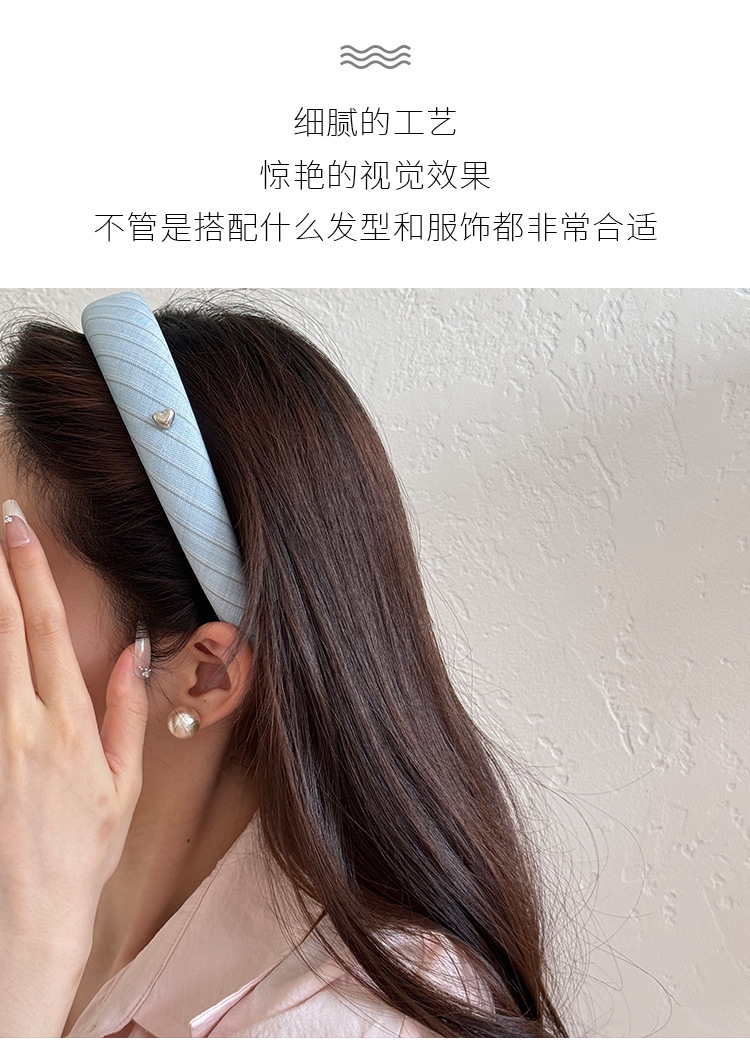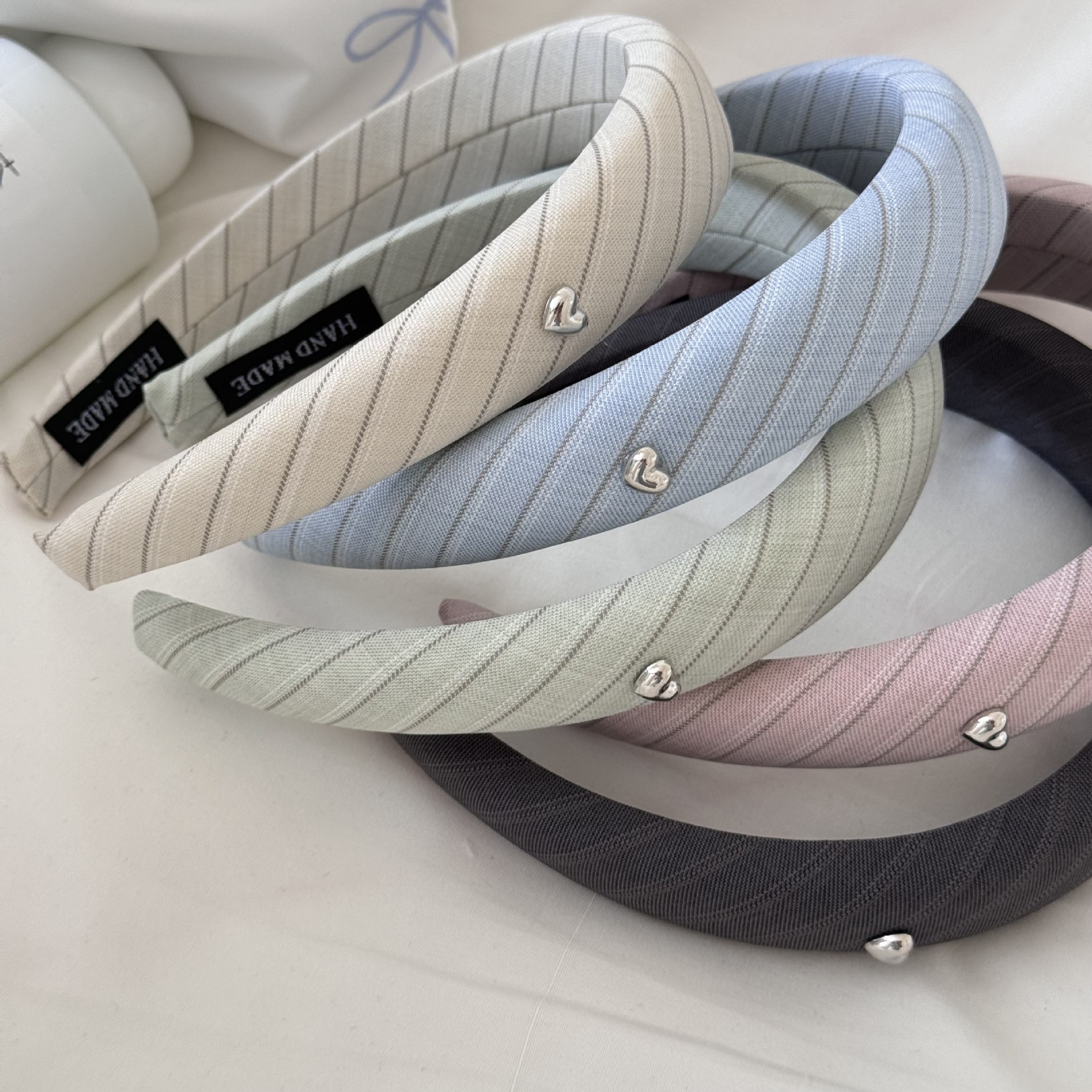 상큼한 패브릭 블루 부드러운 대각선 줄무늬 러브 헤드밴드, 우아하고 고급스러운 감압 헤어밴드, 여성용 스위트 헤드밴드
