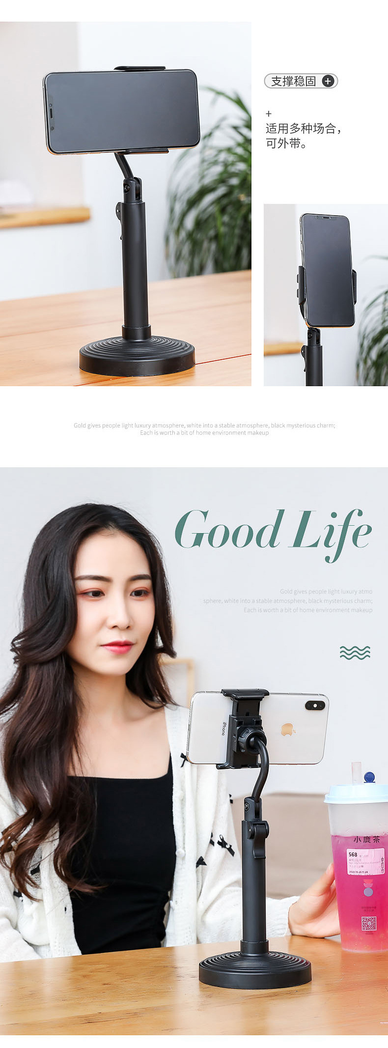 懒人手机支架直播用 手机支架可折叠 可伸缩通用调节自拍手机支架