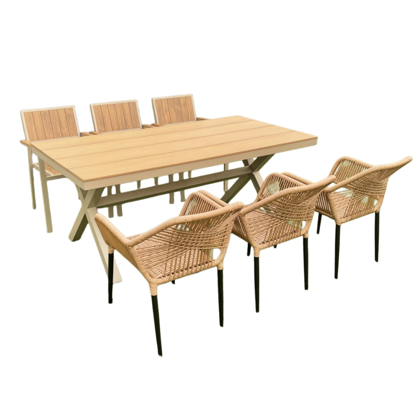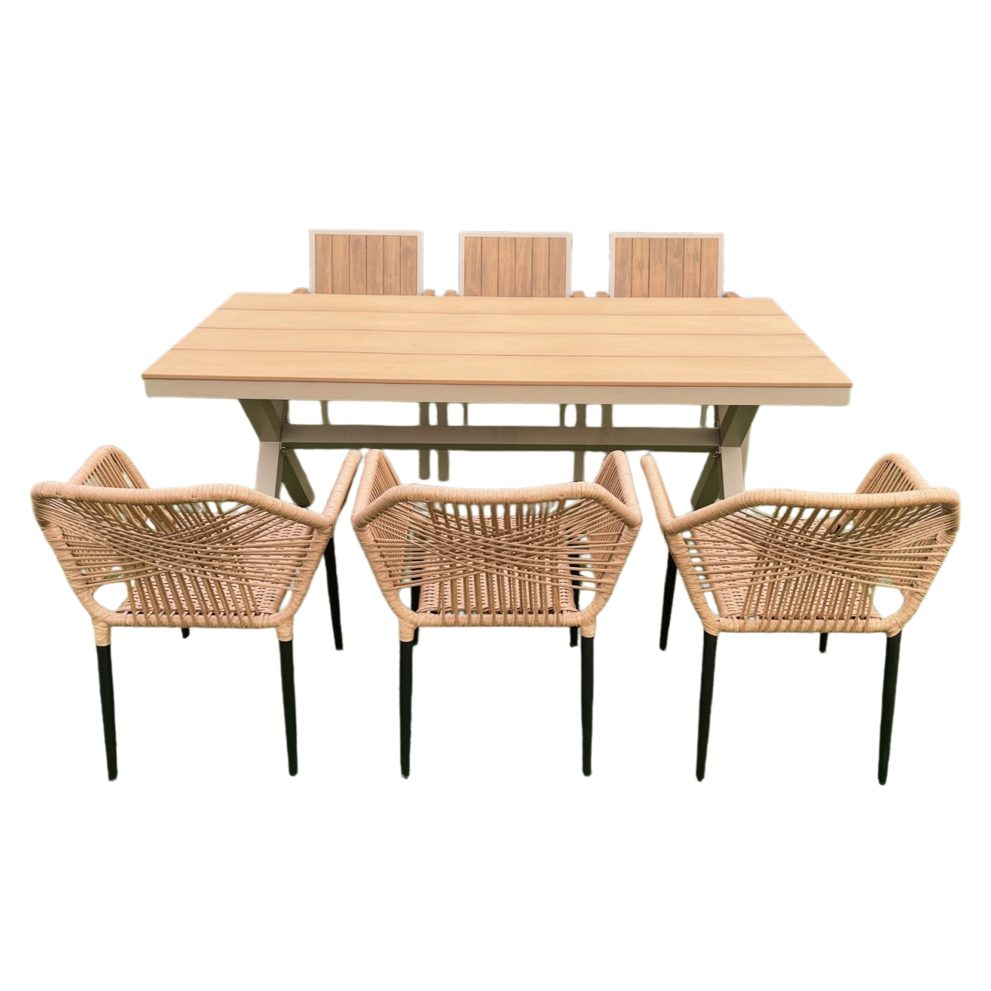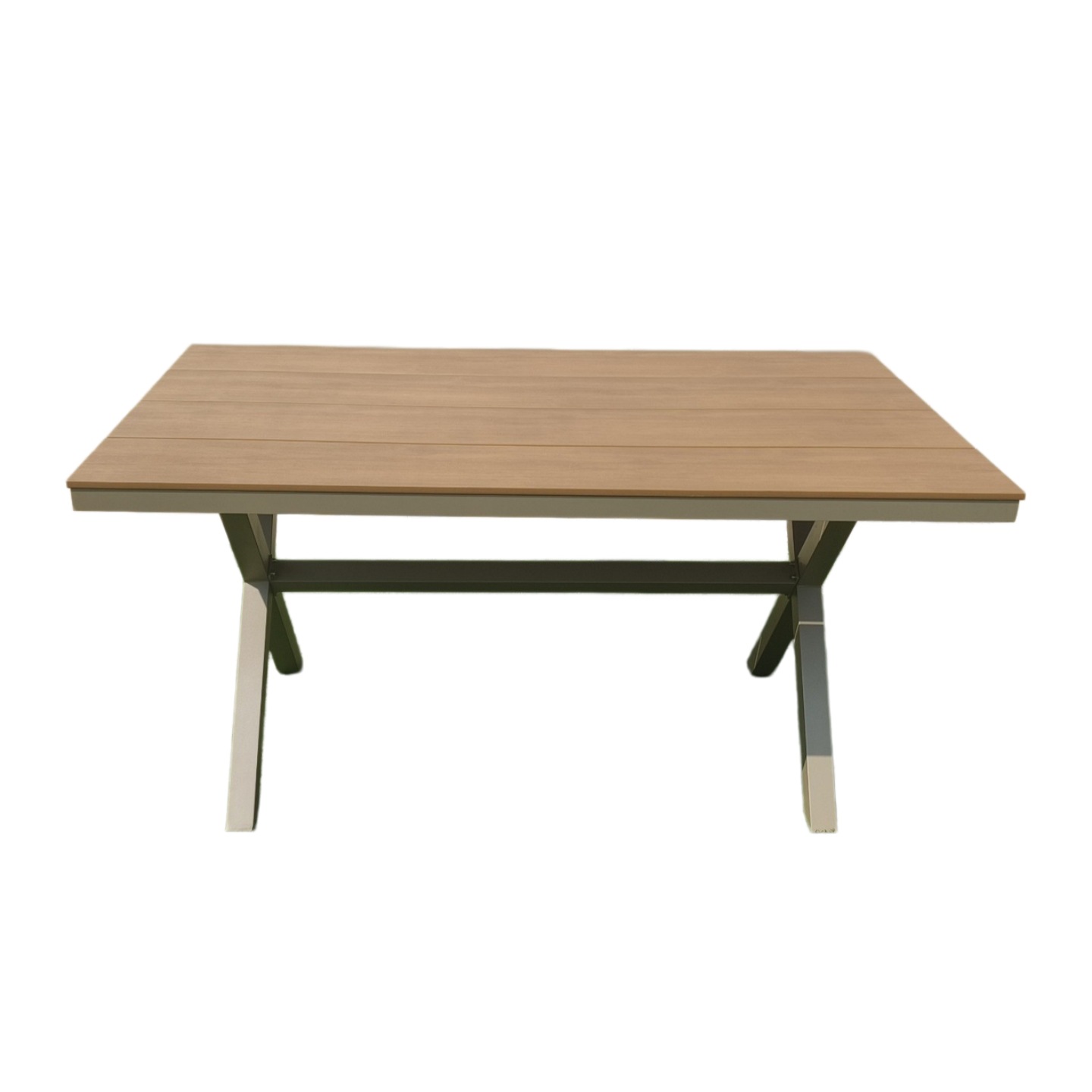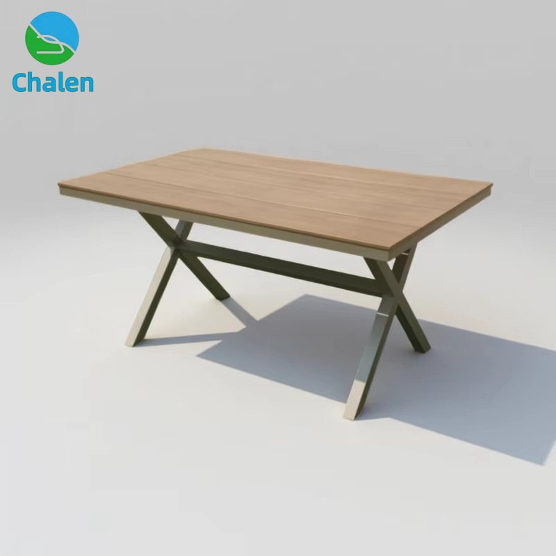 야외 테이블 X 다리 직사각형 테이블 플라스틱 나무 테이블 알루미늄 프레임 파티오 테이블 정원 테라스 레저 테이블 식탁