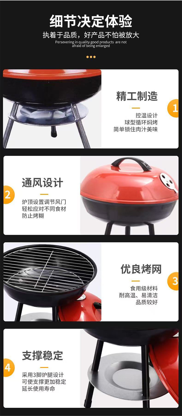 국경 간 도매 숯 라운드 애플 그릴 야외 미국식 바베큐 그릴 3 다리 및 4 다리 캠핑 휴대용 바베큐 그릴스토어 가기