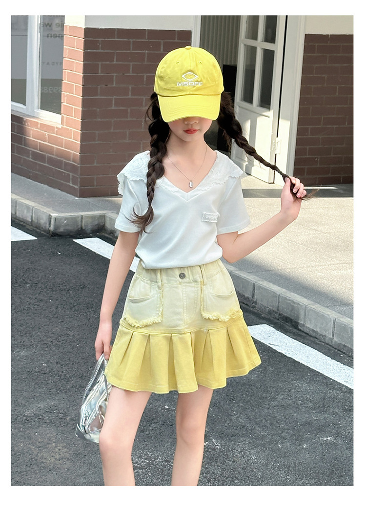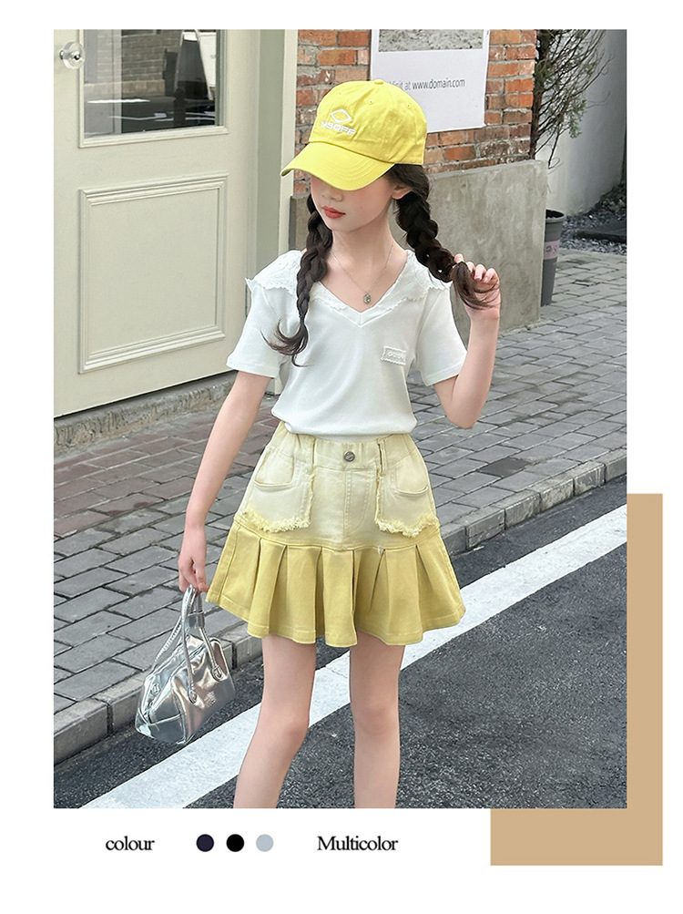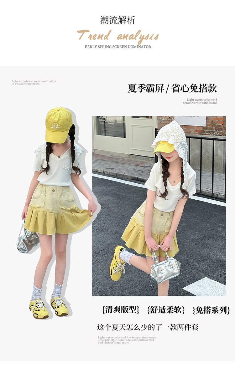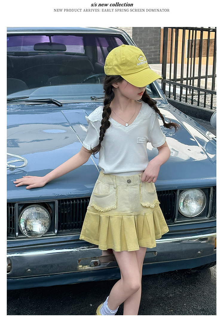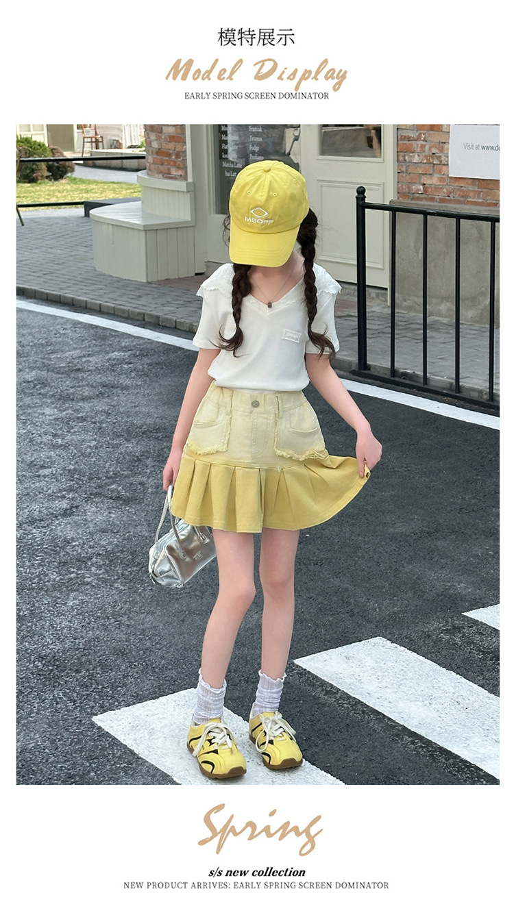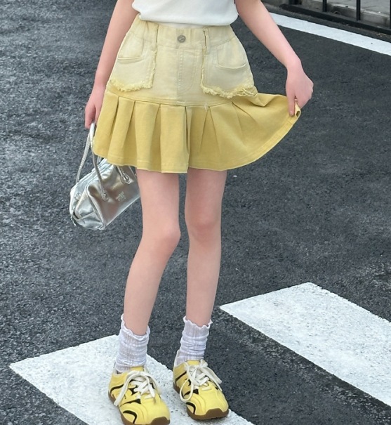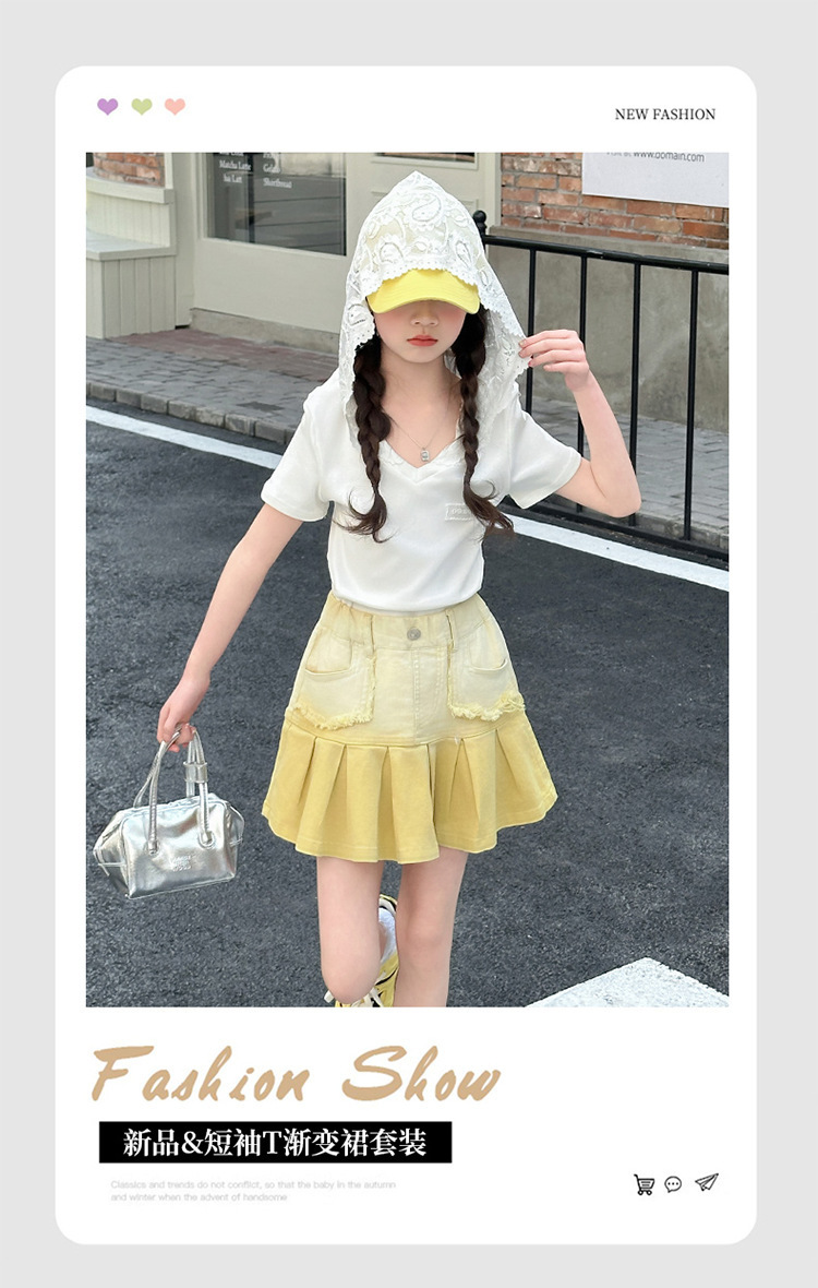 여자 여름 짧은 치마 2025 새로운 패션 여자 한국 스타일 중대형 어린이 스타일 그라데이션 컬러 주름 치마 크로스 보더 트렌드스토어 가기