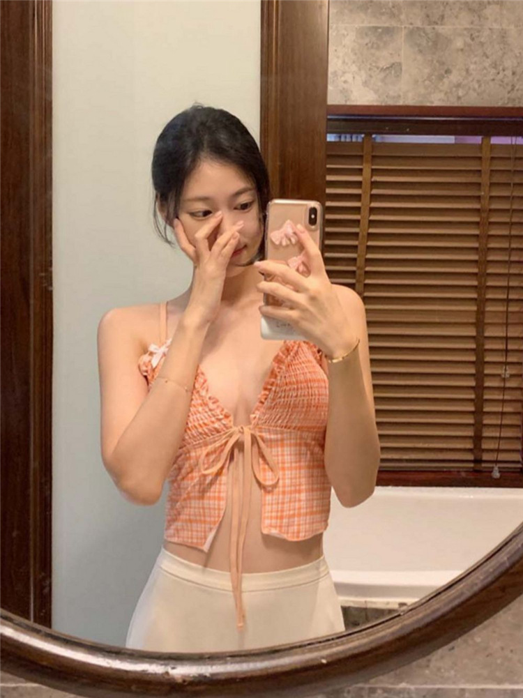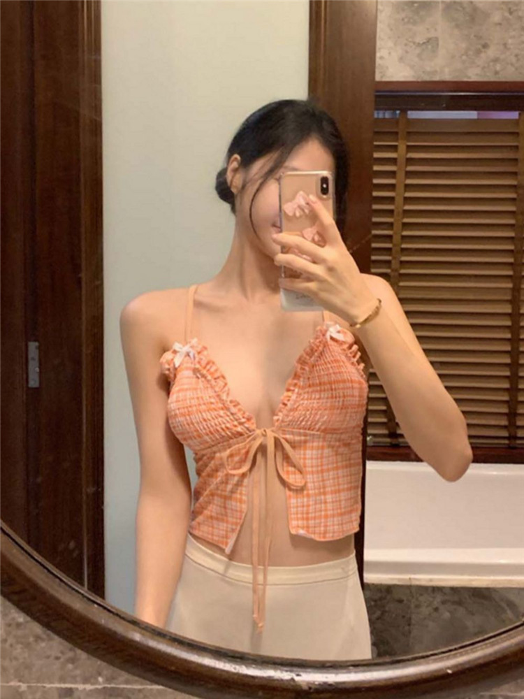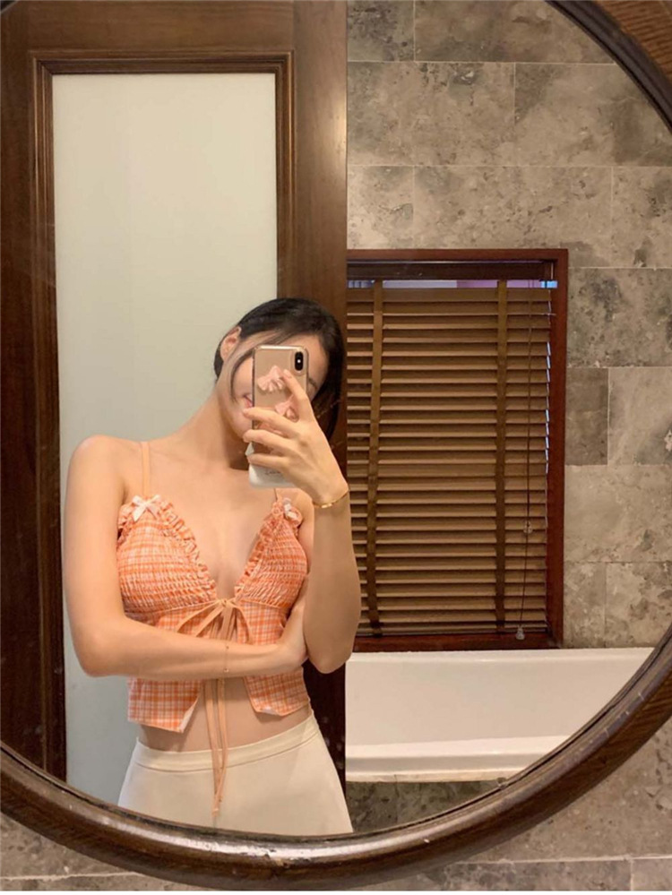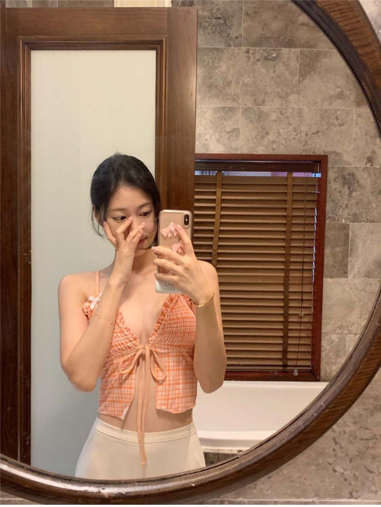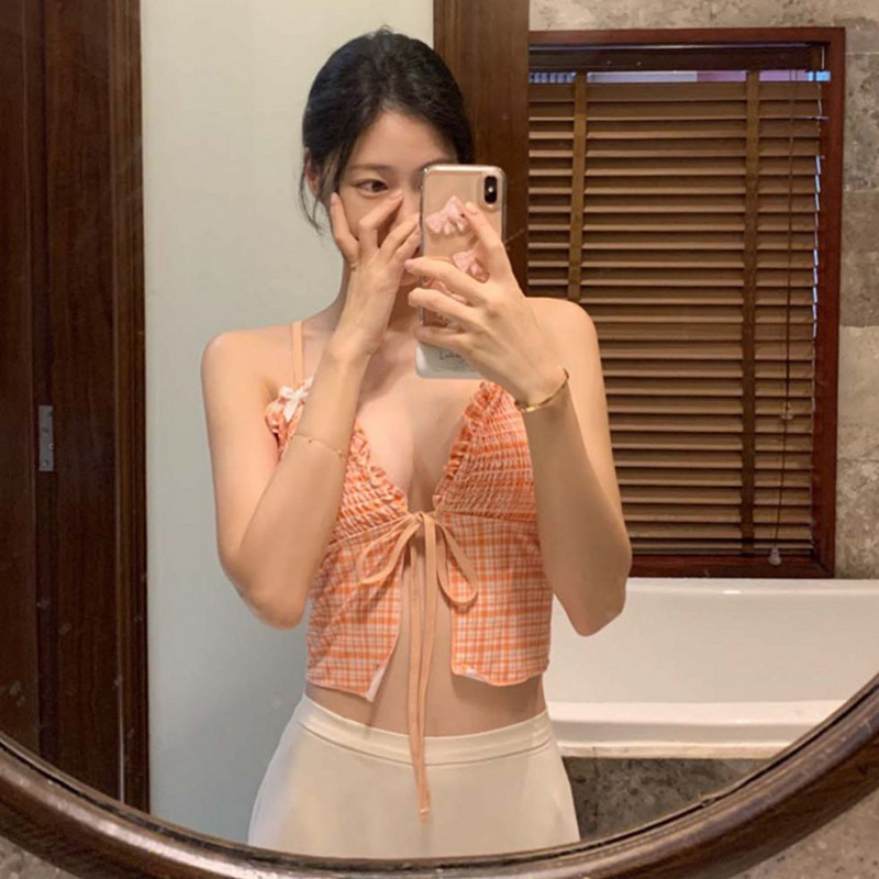 작은 가슴을 감싸주는 귀여운 일본식과 한국식 주름 장식과 리본으로 묶인 스플릿 비키니 수영복, 고급스러운 소녀 수영복스토어 가기