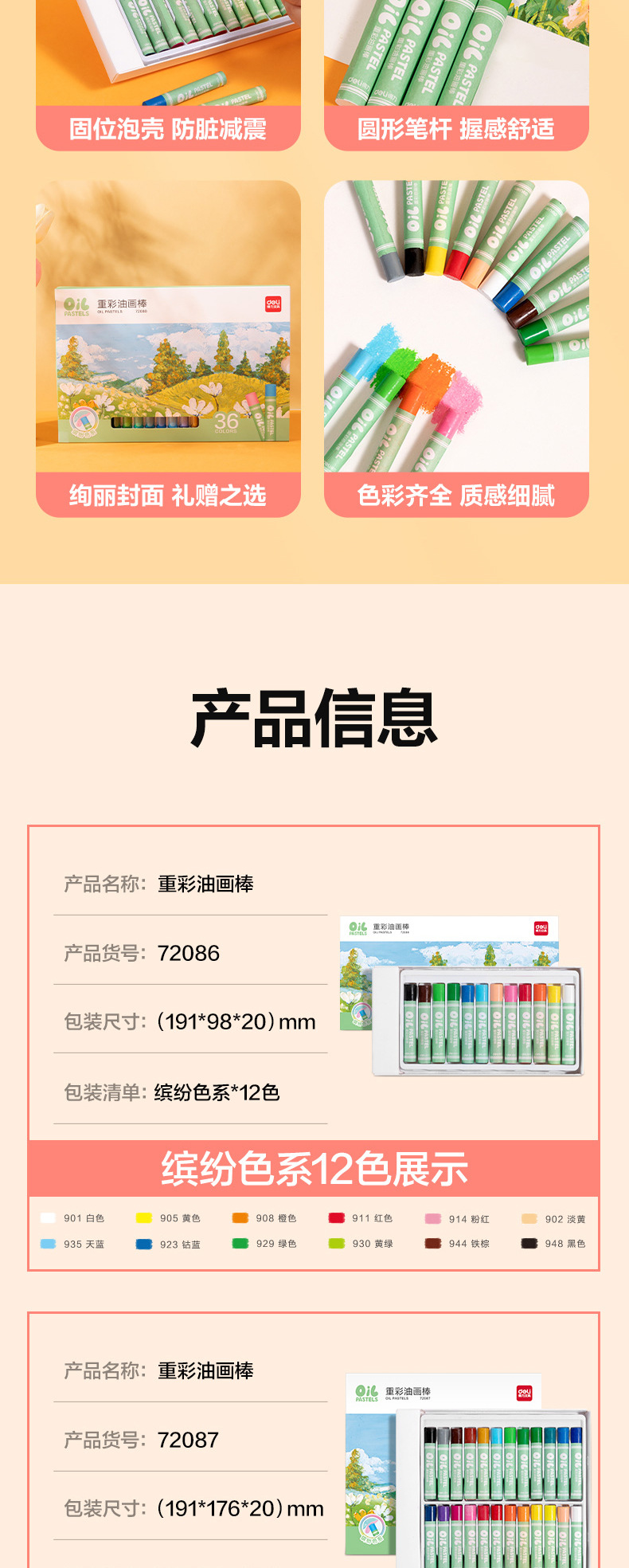 델리 72086_12색 헤비 컬러 오일 파스텔 오일 파스텔 크레용 컬러풀 스틱스토어 가기
