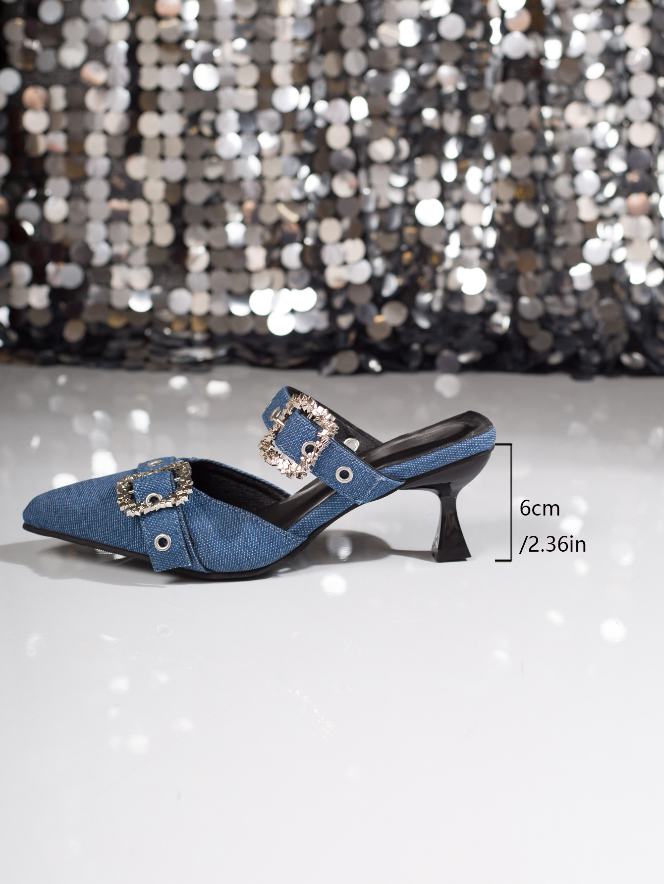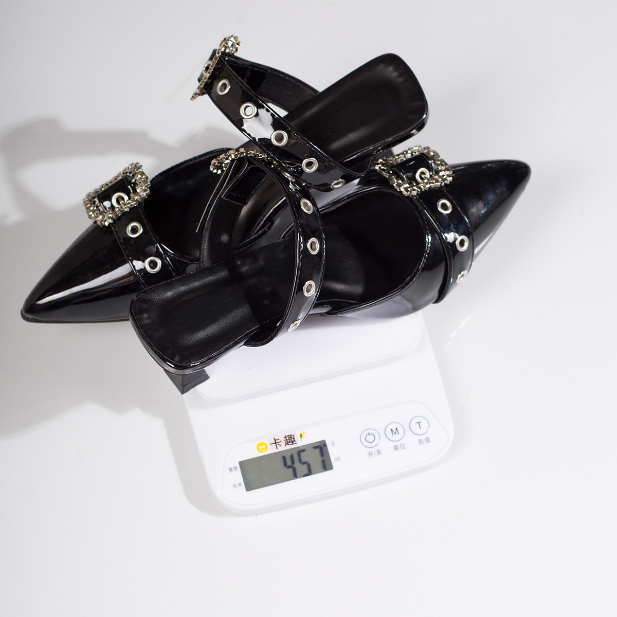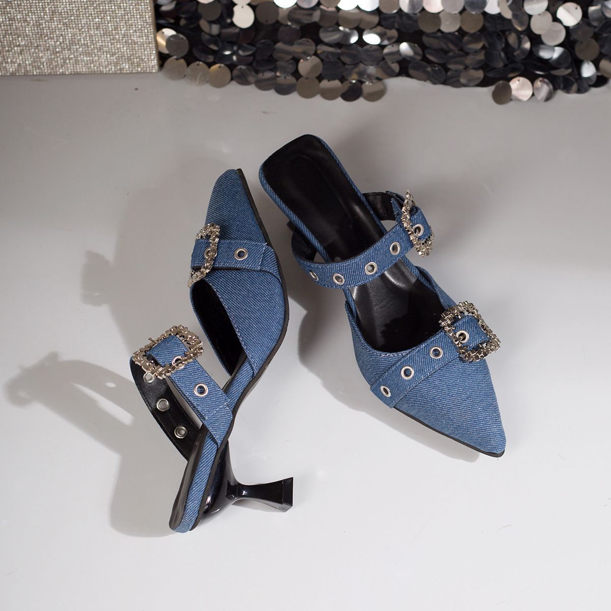 국경 간 대외 무역 대형 여성 신발 2025 여름 새로운 스타일 뾰족한 사각형 버클 펑크 스틸레토 하이힐 슬리퍼스토어 가기