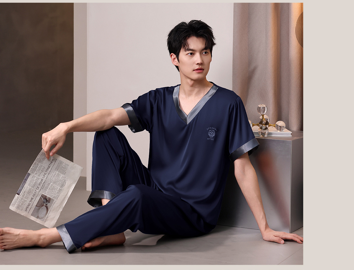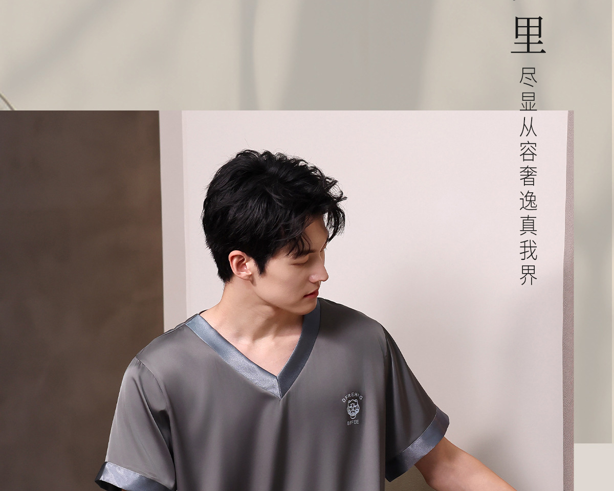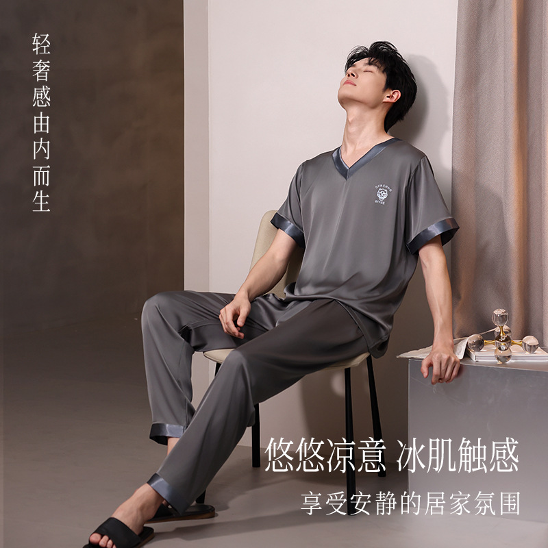 [얼음과 얼음 실크] 남성용 새 잠옷 봄, 가을, 여름 반팔 하이 엔드 청소년 아이스 실크 홈웨어 세트스토어 가기