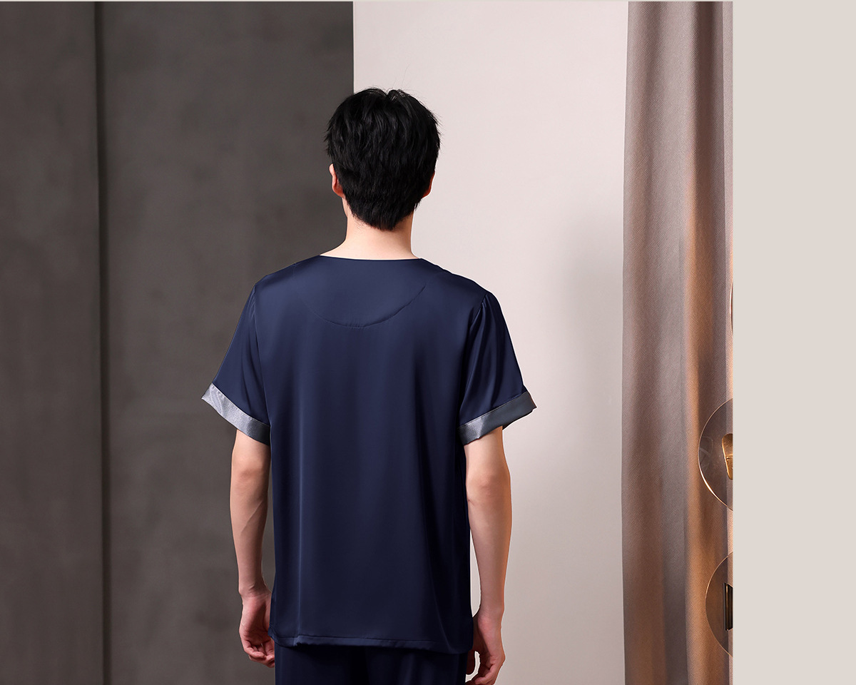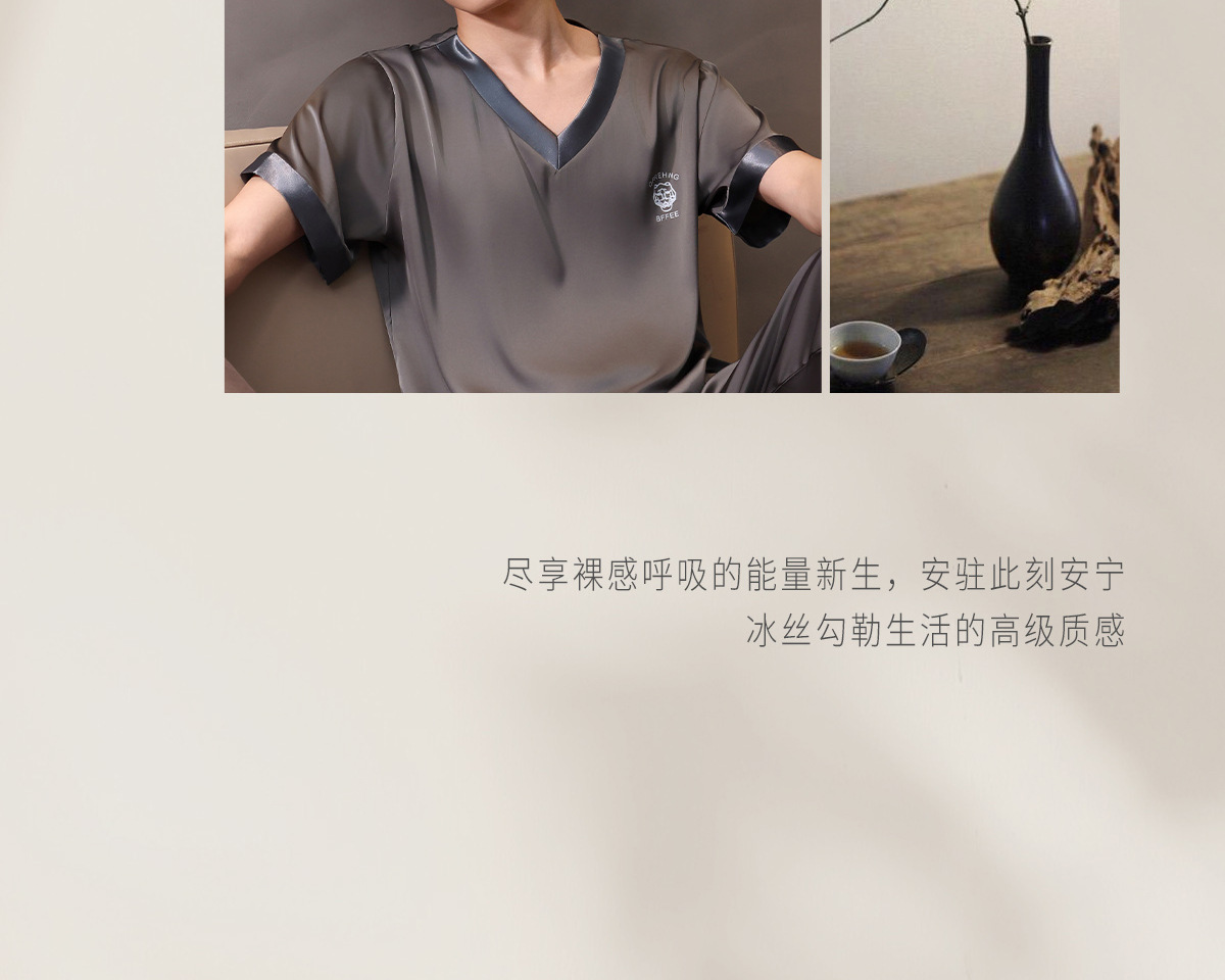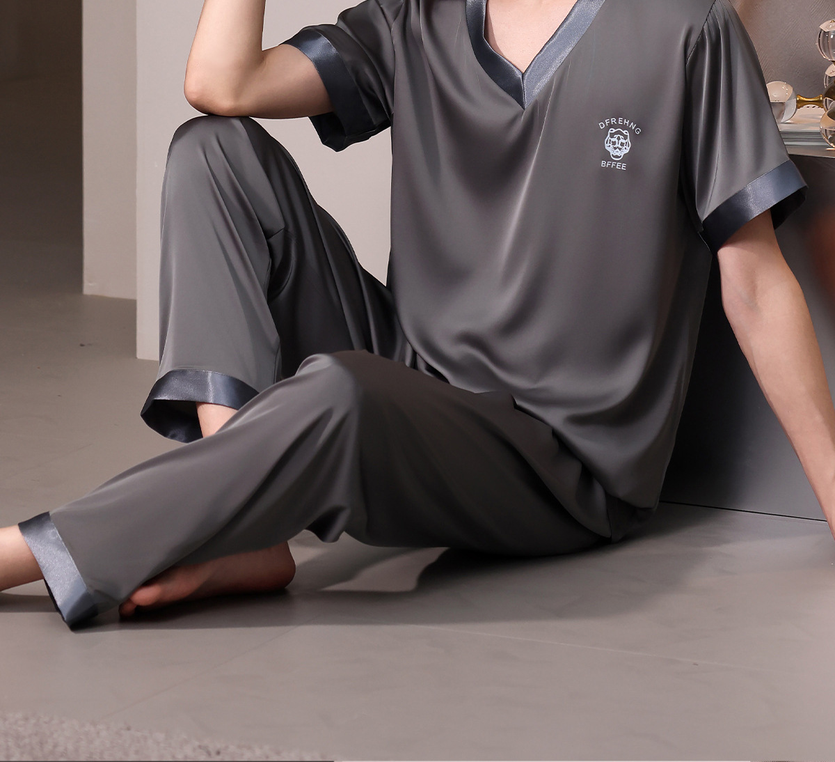 [얼음과 얼음 실크] 남성용 새 잠옷 봄, 가을, 여름 반팔 하이 엔드 청소년 아이스 실크 홈웨어 세트스토어 가기