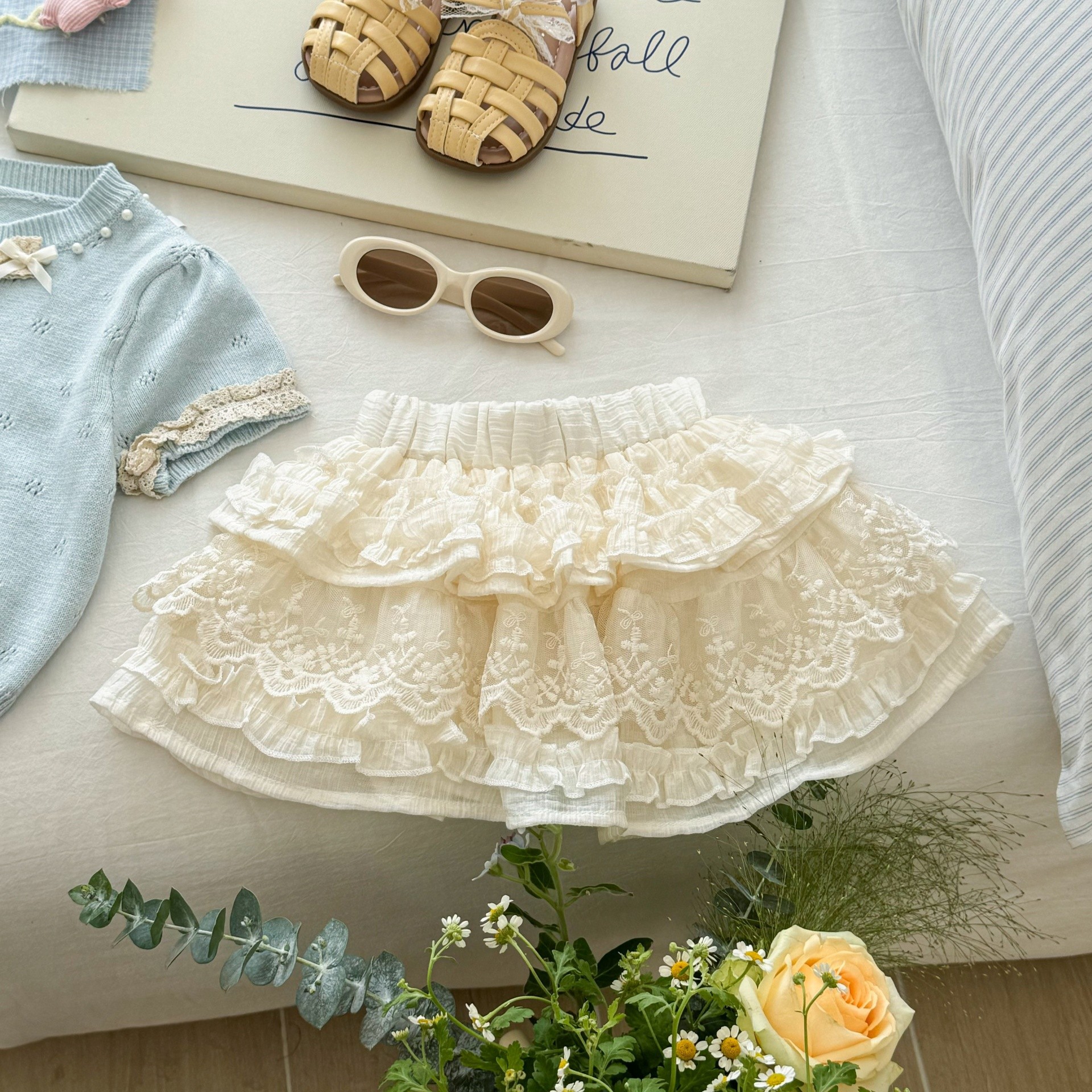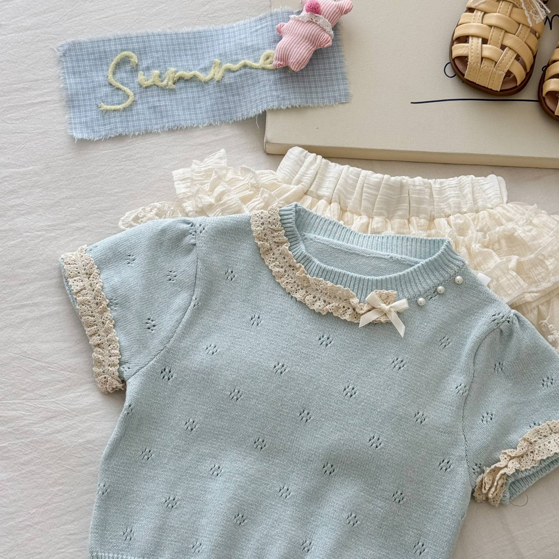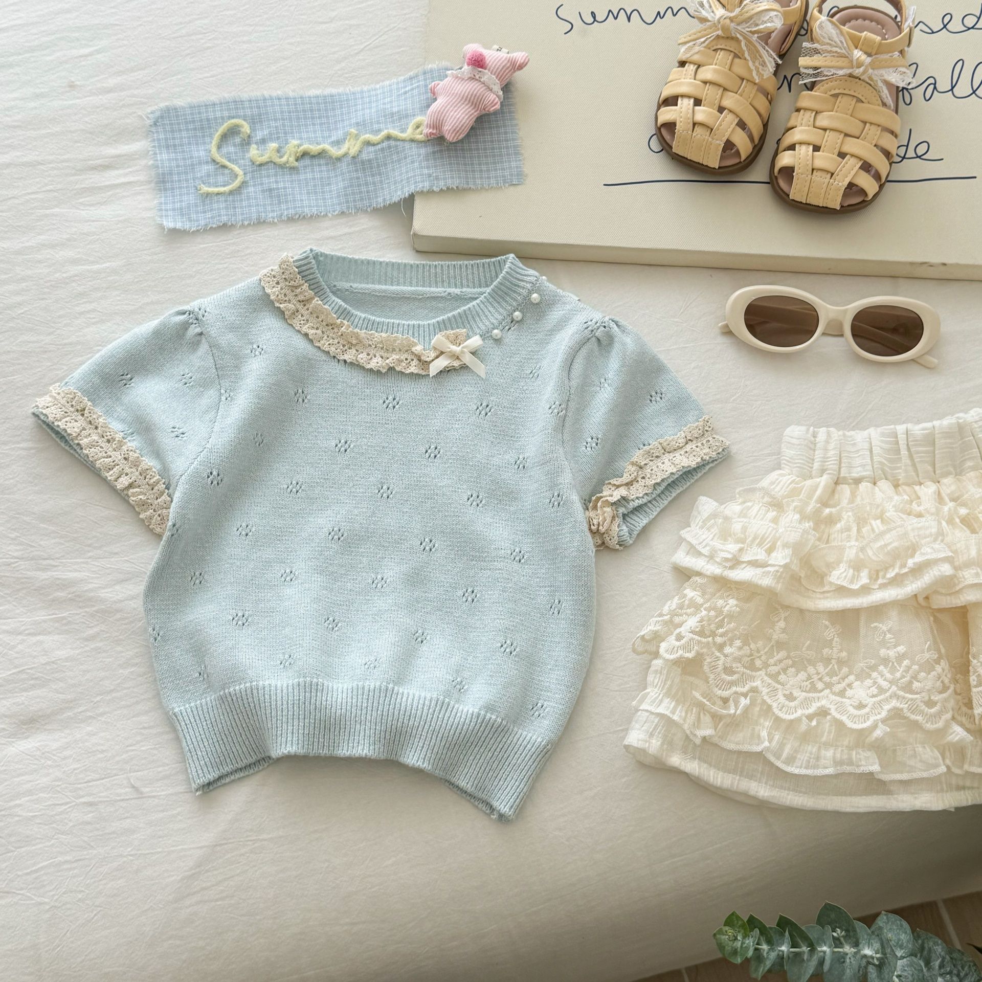 여자 달콤한 양복 2025 여름 니트 반팔 티셔츠 레이스 아기 소녀 케이크 스커트 투피스 세트 유행 스타일