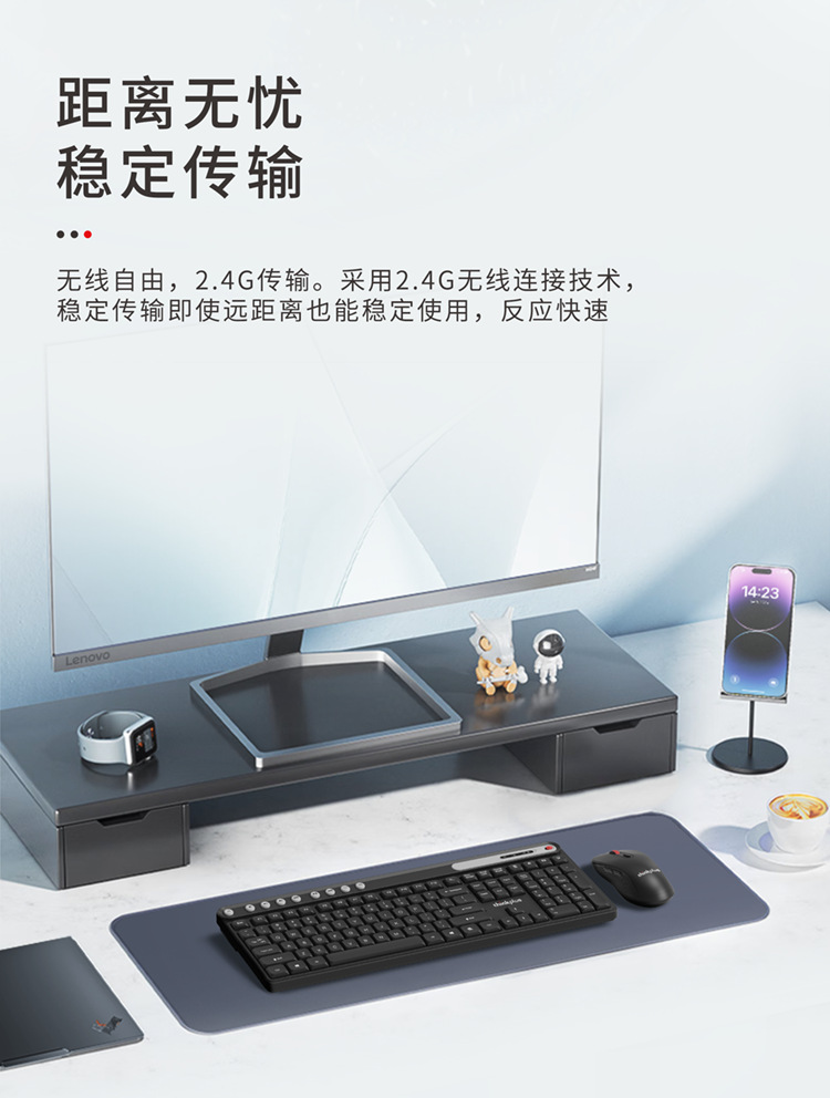 Lenovo K225 무선 라이트 키보드 인체 공학적 디자인 저 지연 2.4G 데스크탑 컴퓨터 사무실 전용스토어 가기