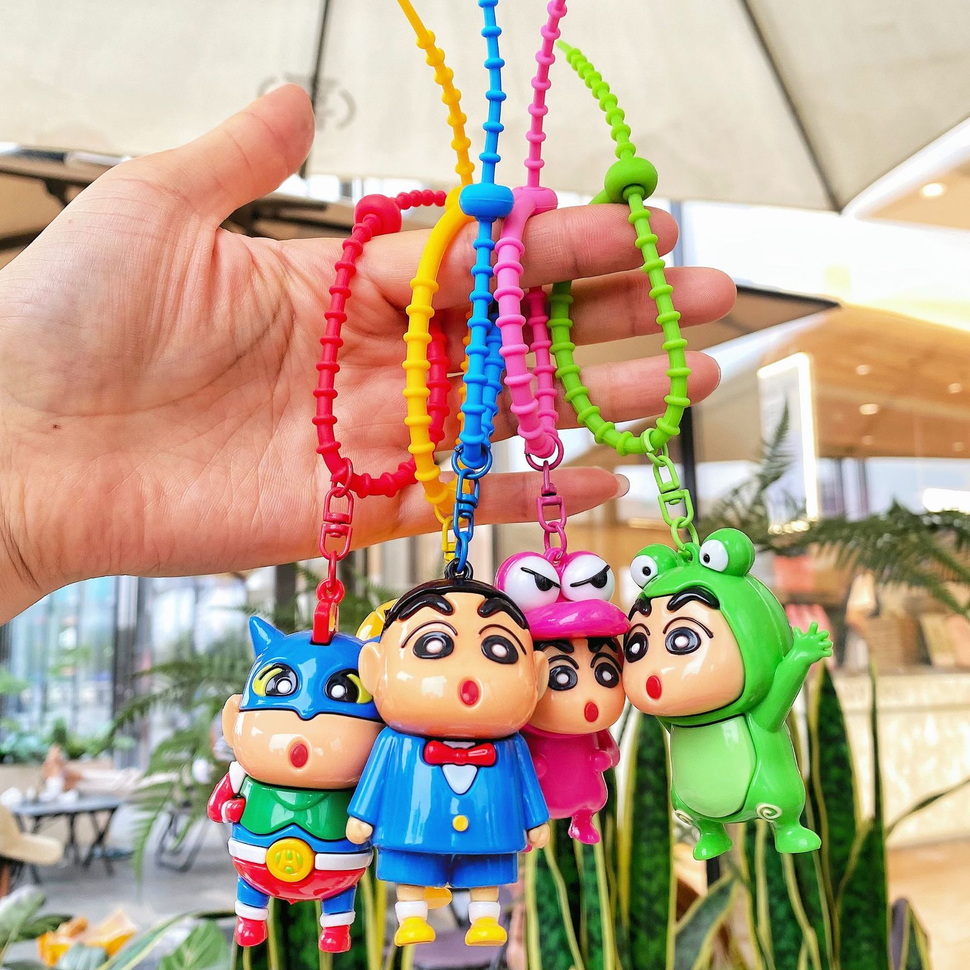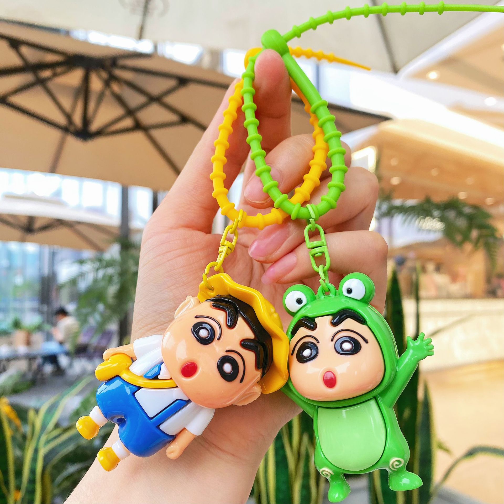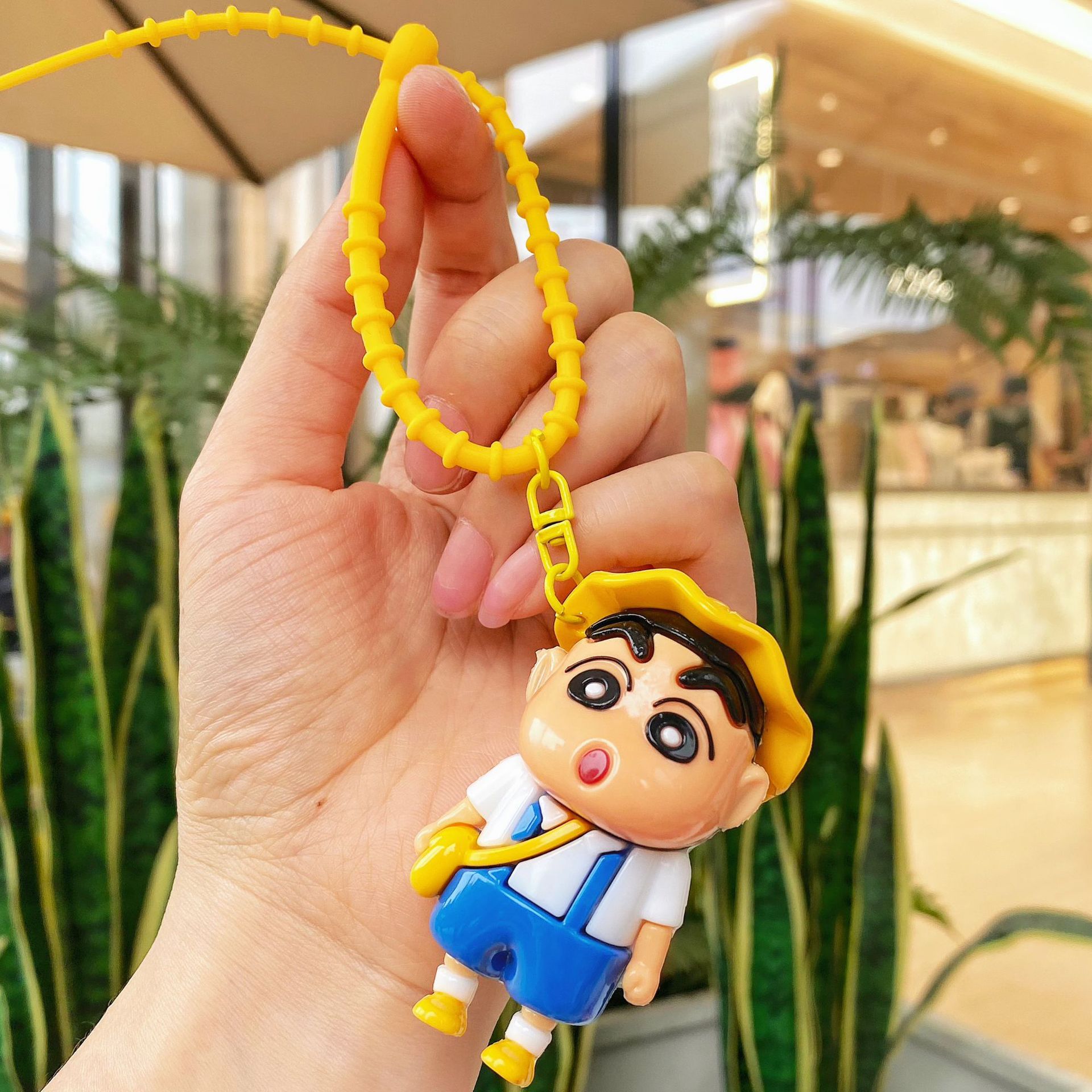 만화 크레용 신짱 키 체인 전기 도금 인형 펜던트 커플 학교 가방 펜던트 열쇠 고리 아기 기계 작은 선물스토어 가기
