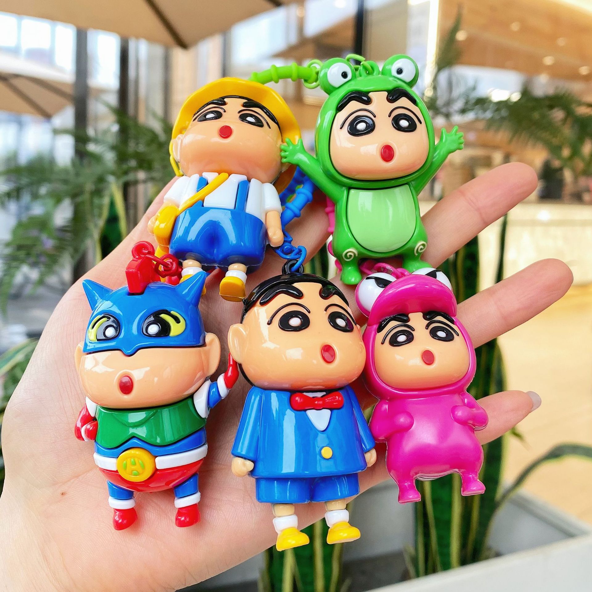 만화 크레용 신짱 키 체인 전기 도금 인형 펜던트 커플 학교 가방 펜던트 열쇠 고리 아기 기계 작은 선물