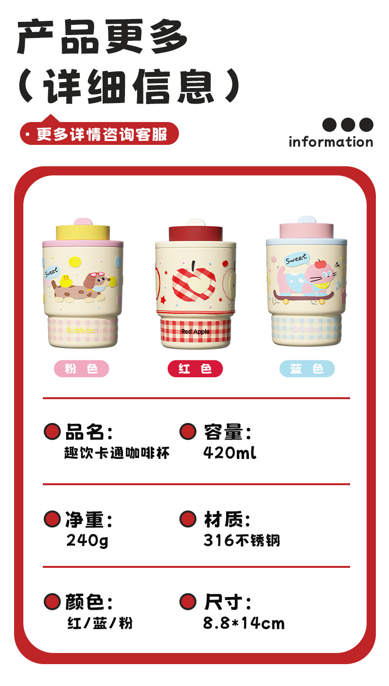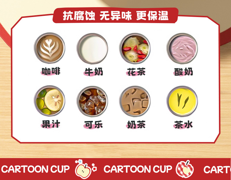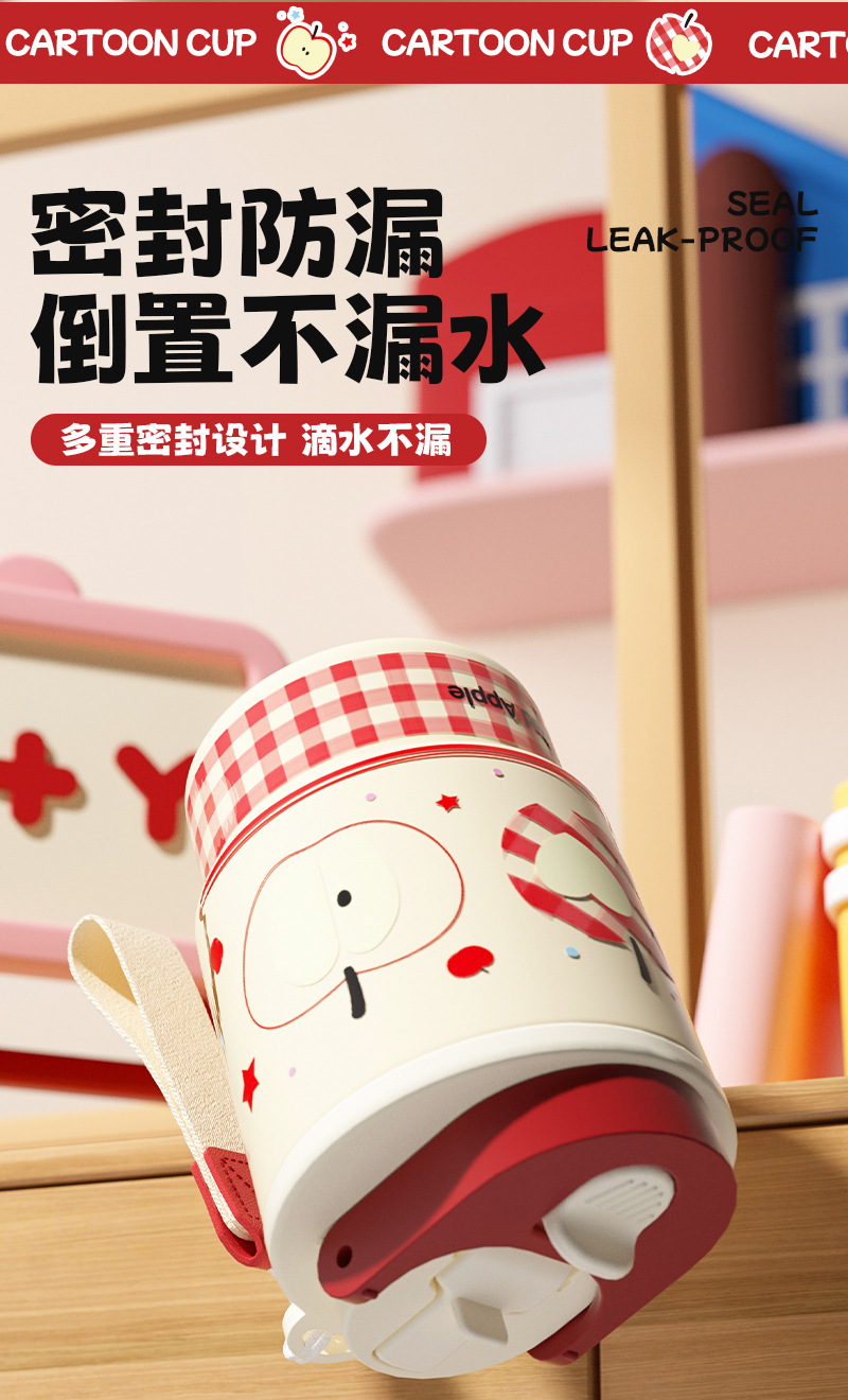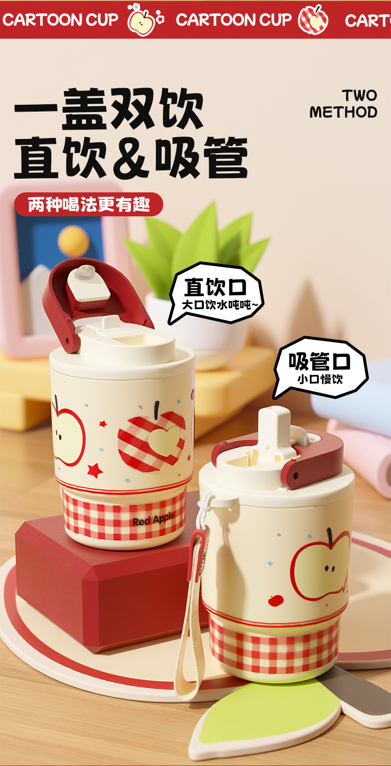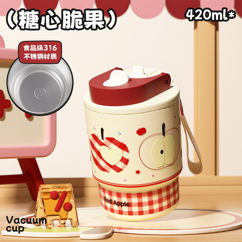 어린이 만화 더블 음료 보온병 컵 316L 스테인레스 스틸 커피 컵 빨대가있는 여성용 휴대용 자동차 워터 컵스토어 가기