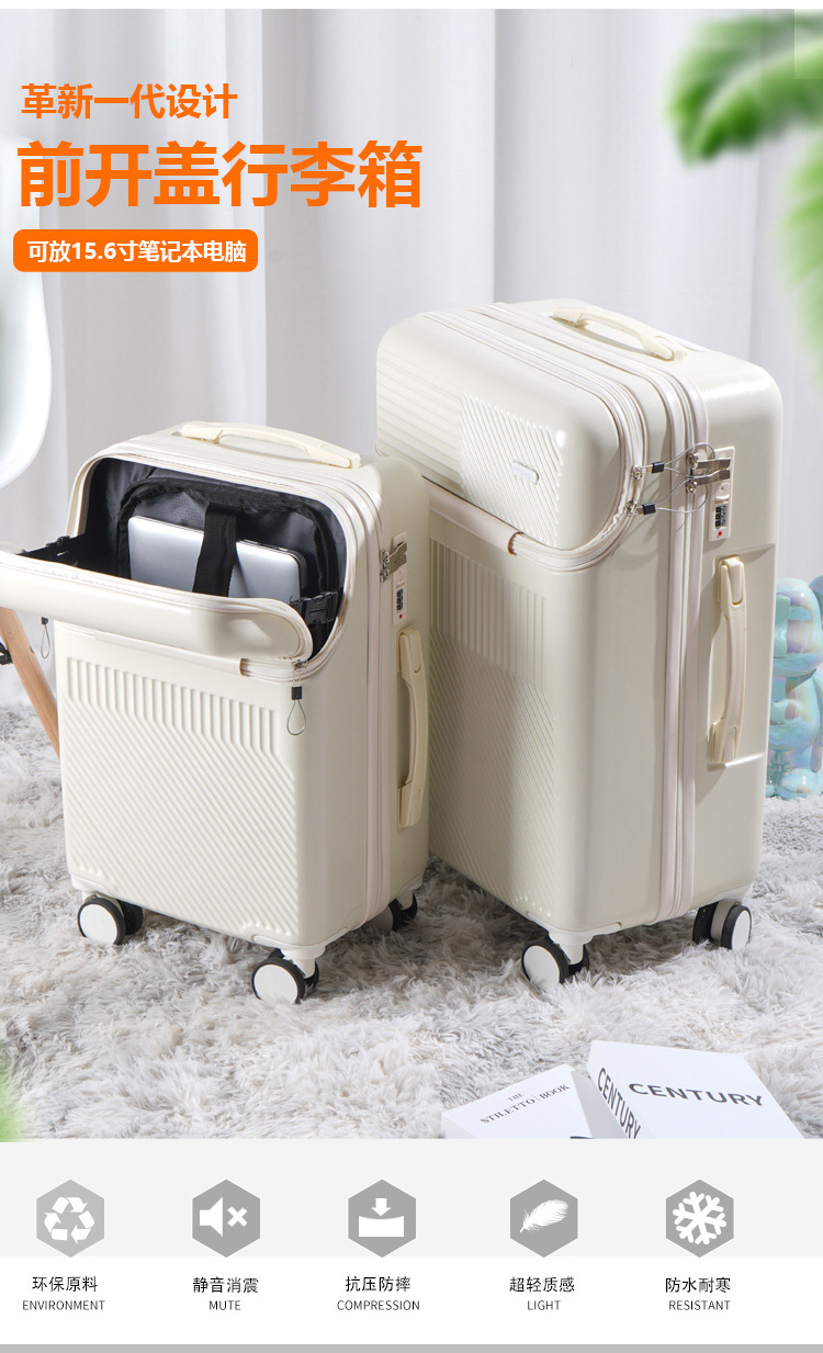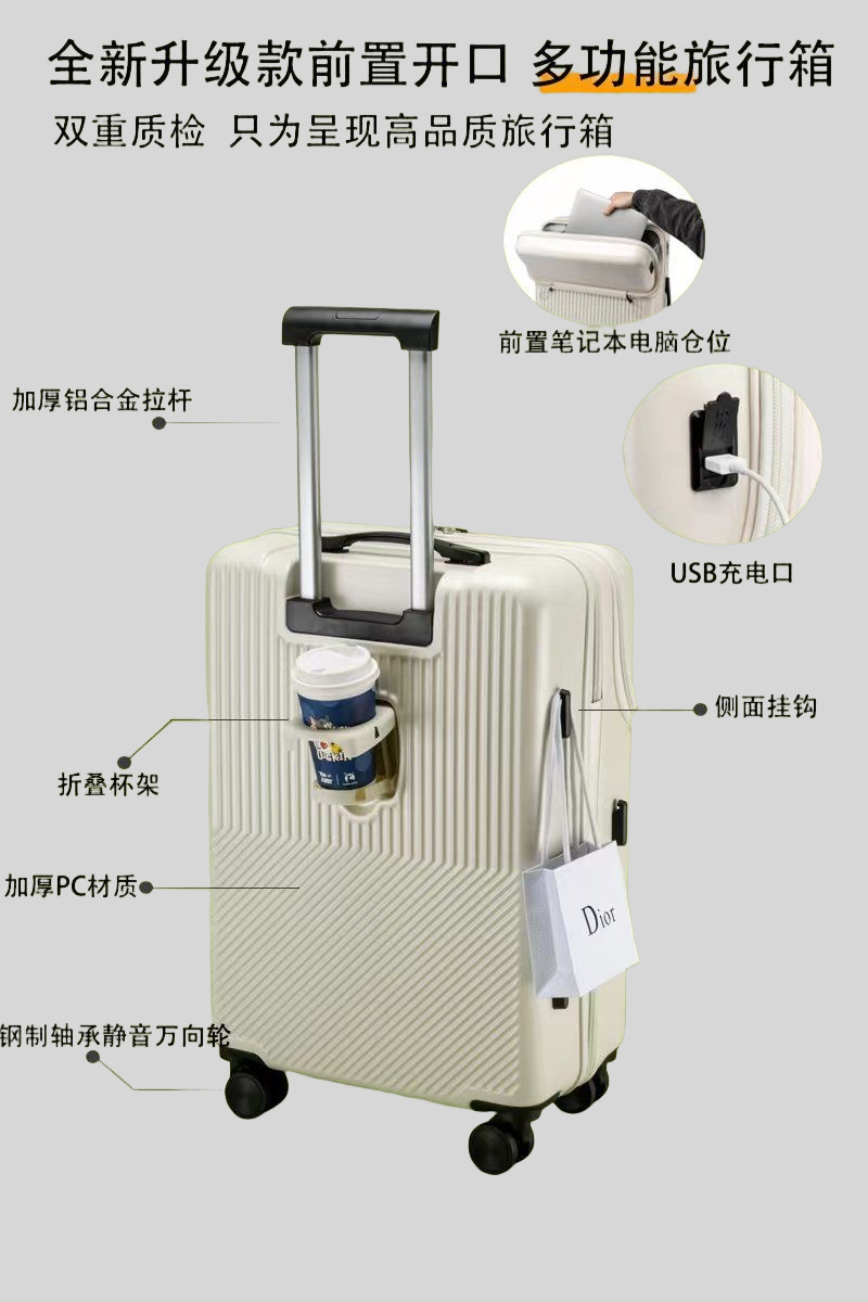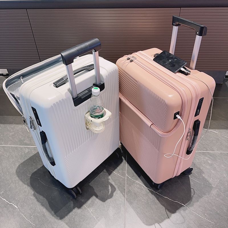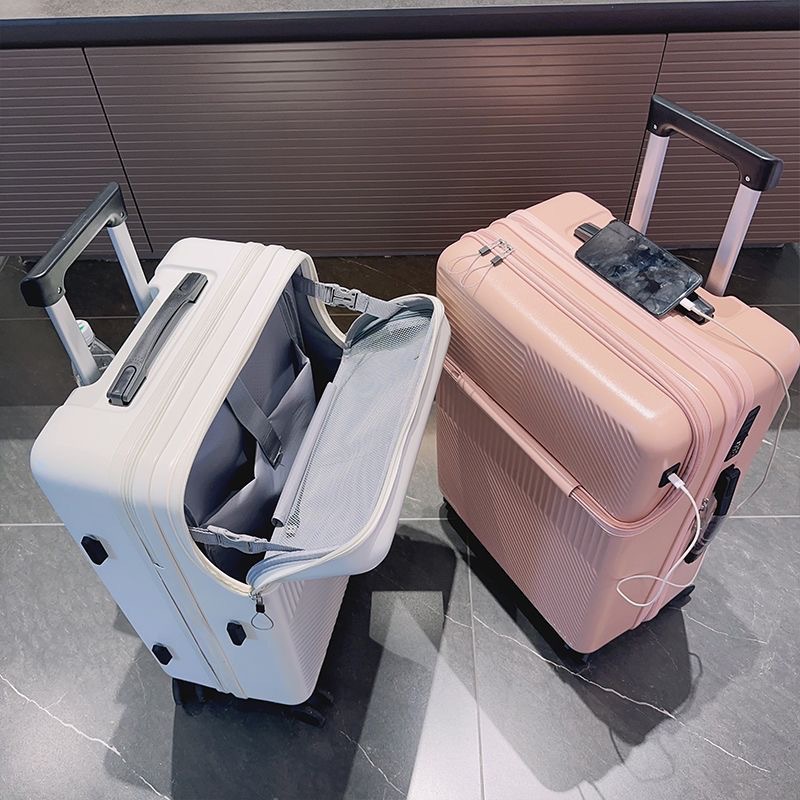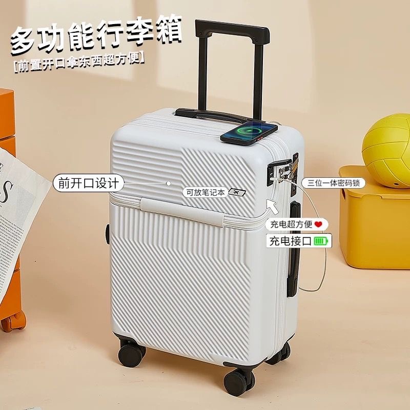 USB 인터페이스가 있는 새로운 다기능 전면 개방형 여행가방, 학생용 무소음 범용 휠 비밀번호 상자스토어 가기