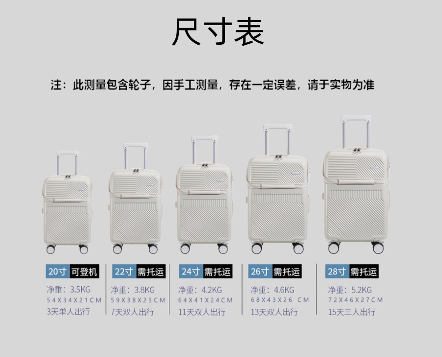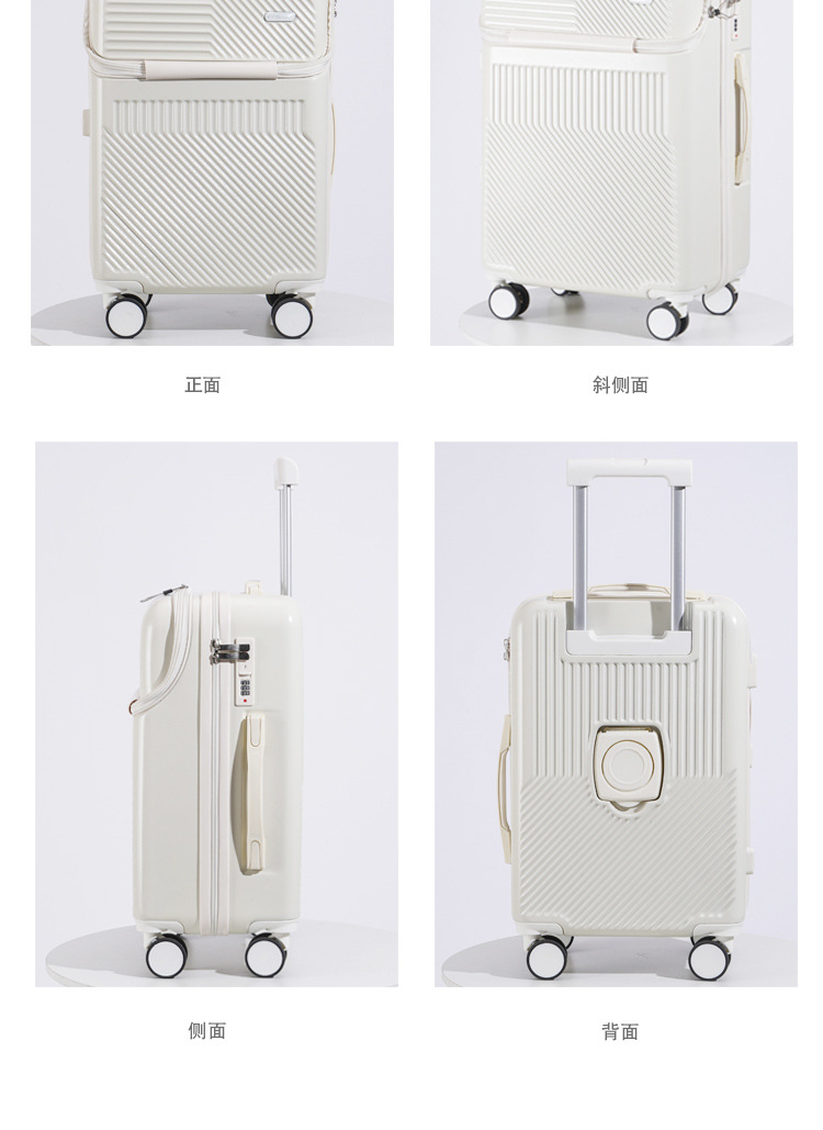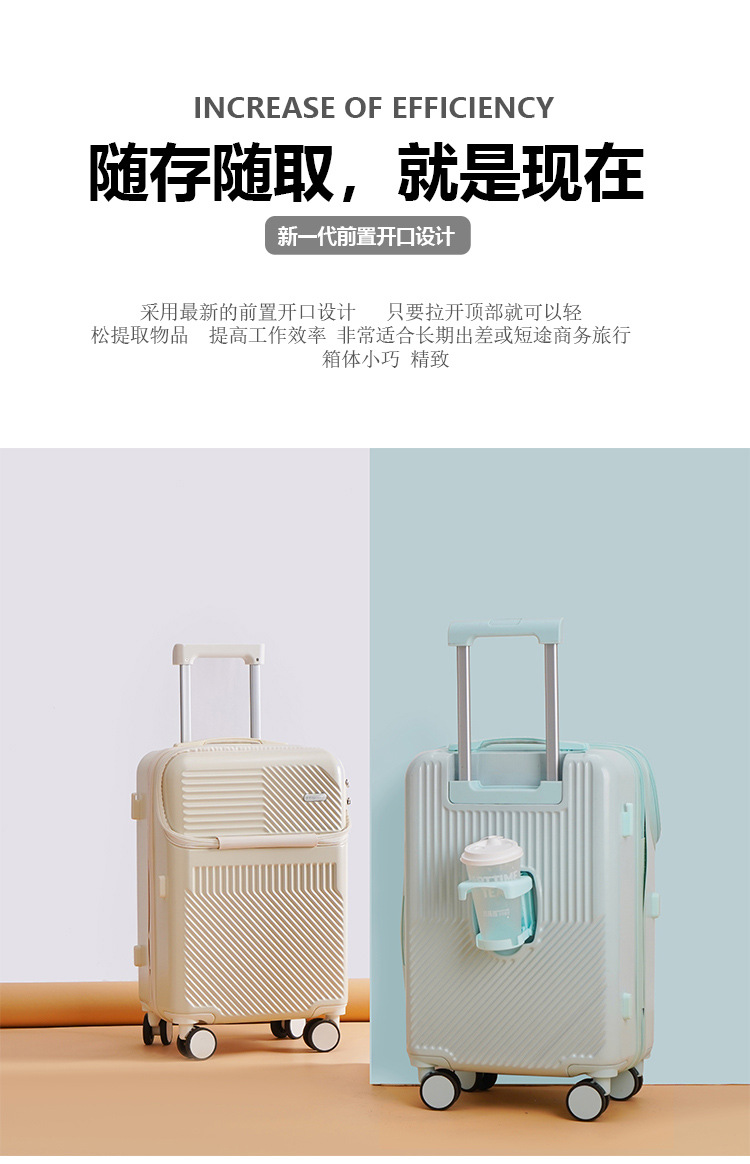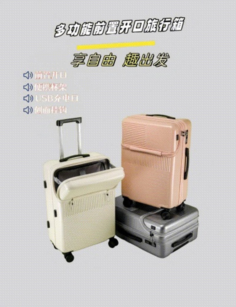 USB 인터페이스가 있는 새로운 다기능 전면 개방형 여행가방, 학생용 무소음 범용 휠 비밀번호 상자스토어 가기