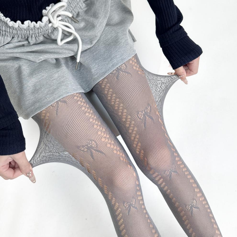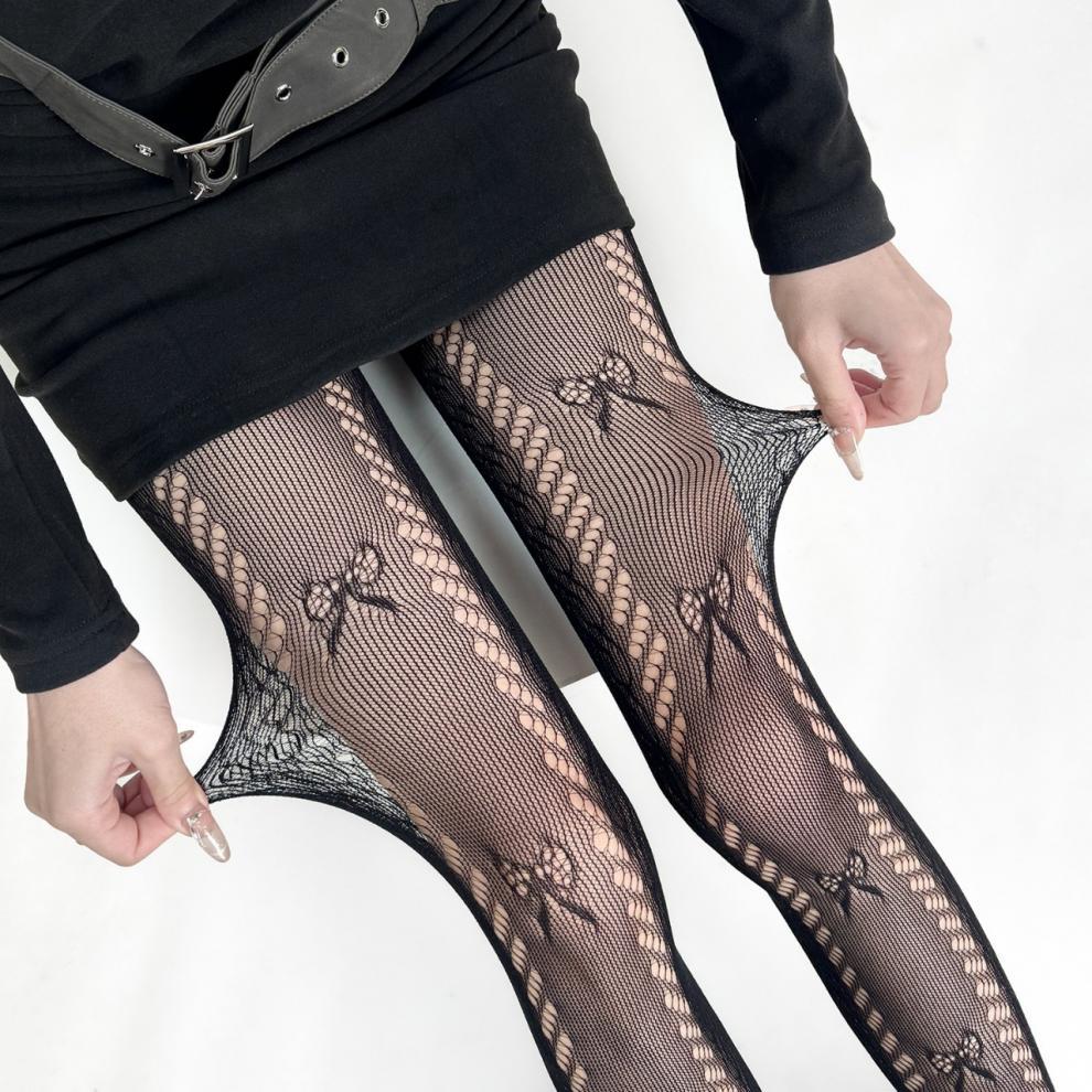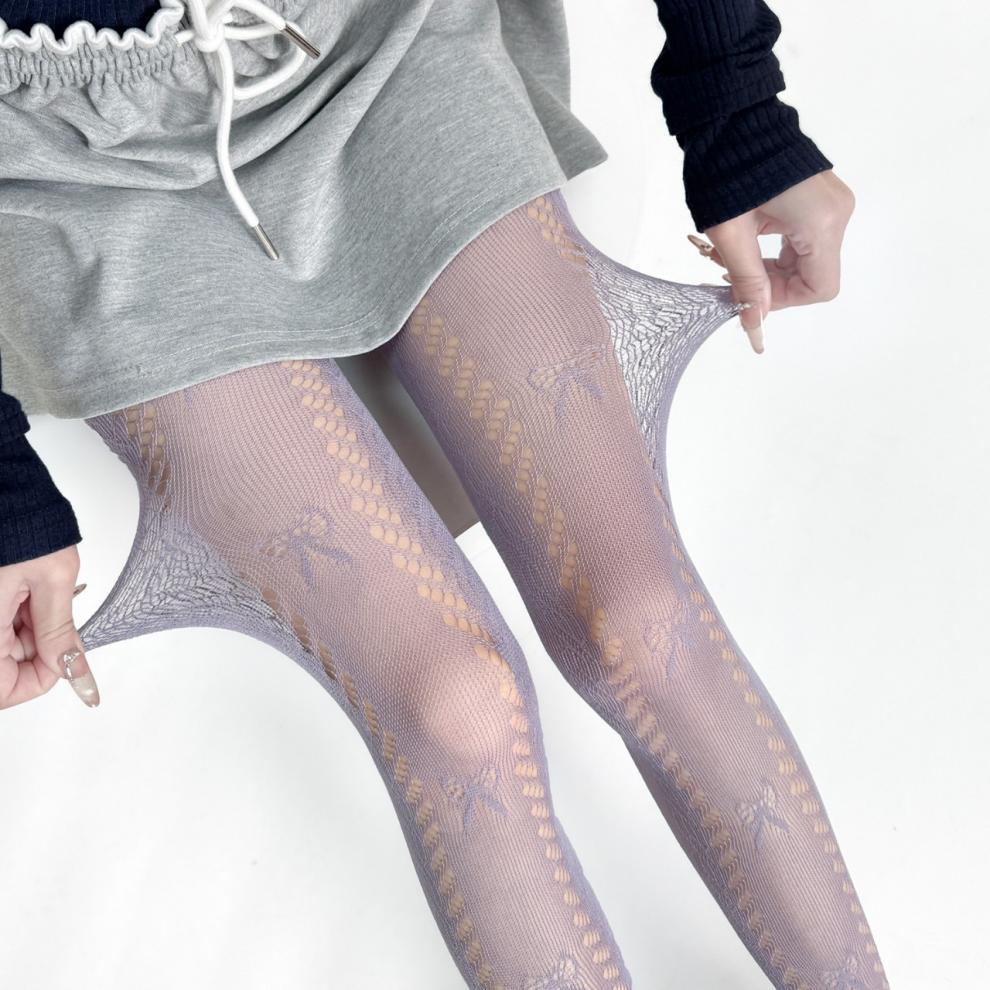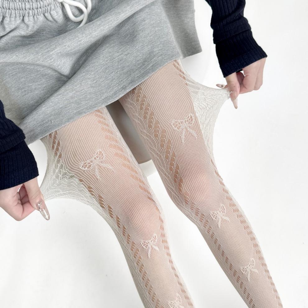 일본 JK 로리타 팬티 스타킹 여성 봄 여름 얇은 나비 매듭 레이스 메쉬 가랑이 바닥 양말