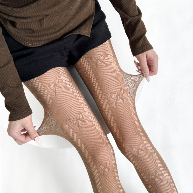 일본 JK 로리타 팬티 스타킹 여성 봄 여름 얇은 나비 매듭 레이스 메쉬 가랑이 바닥 양말스토어 가기