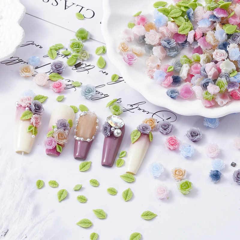 인터넷 연예인 장미 네일 아트 액세서리, 혼합 크기, 입체적인 얼룩진 동백 꽃, 복고풍 네일 다이아몬드 액세서리