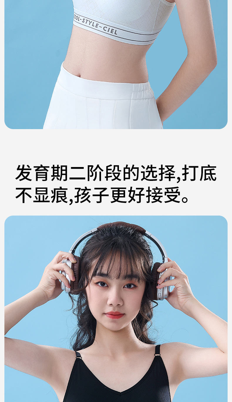 고등학생과 작은 가슴을 가진 소녀들을 위한 조끼 스타일 스포츠 브라, 푸쉬업, 와이어 프리, 이음매 없는 얇은 브라
