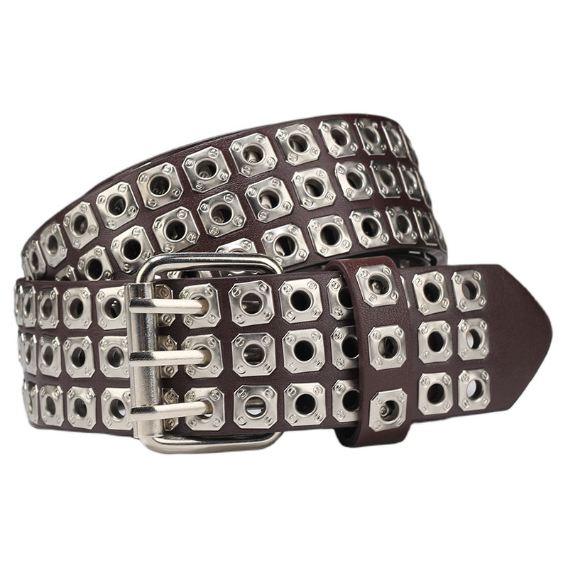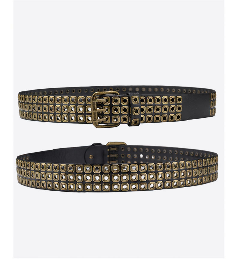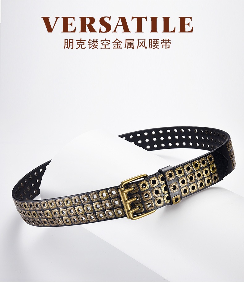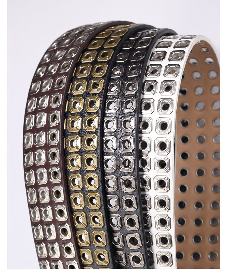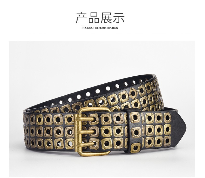 국경을 넘나드는 유럽, 미국 및 아시아 문화 중공 사각형 리벳 에어 아이 레트로 펑크 록 벨트 벨트 남성 및 여성 바지 벨트 유행스토어 가기