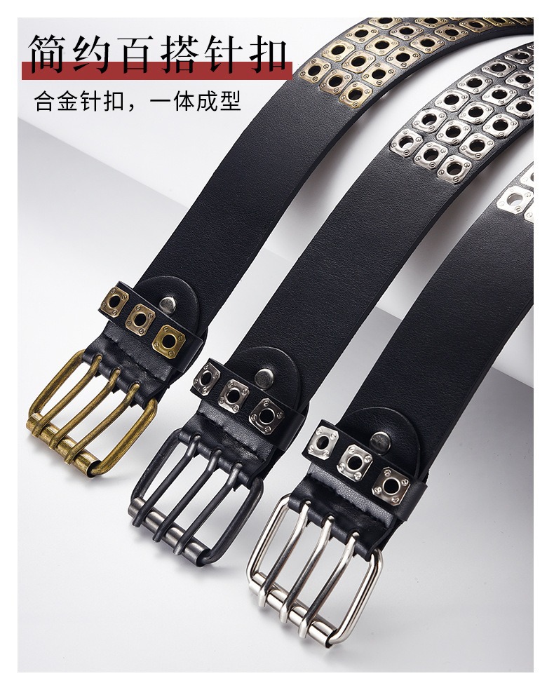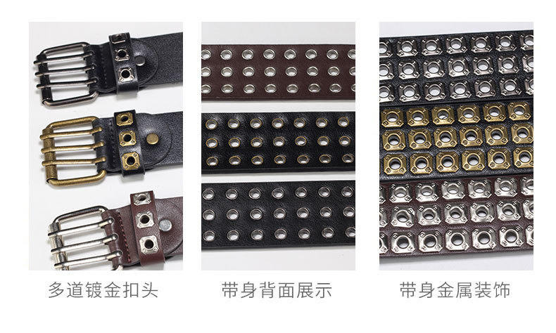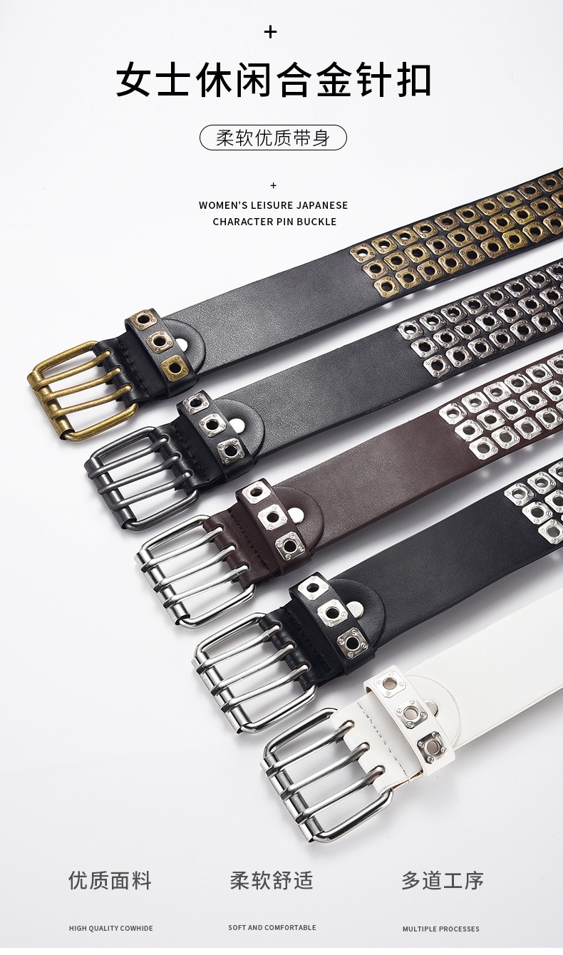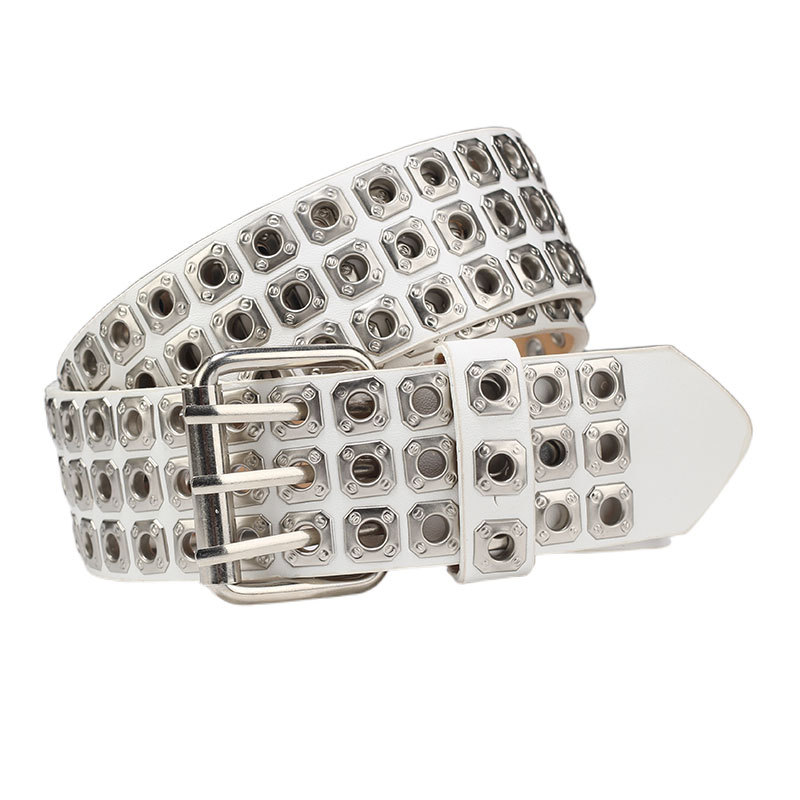 국경을 넘나드는 유럽, 미국 및 아시아 문화 중공 사각형 리벳 에어 아이 레트로 펑크 록 벨트 벨트 남성 및 여성 바지 벨트 유행스토어 가기