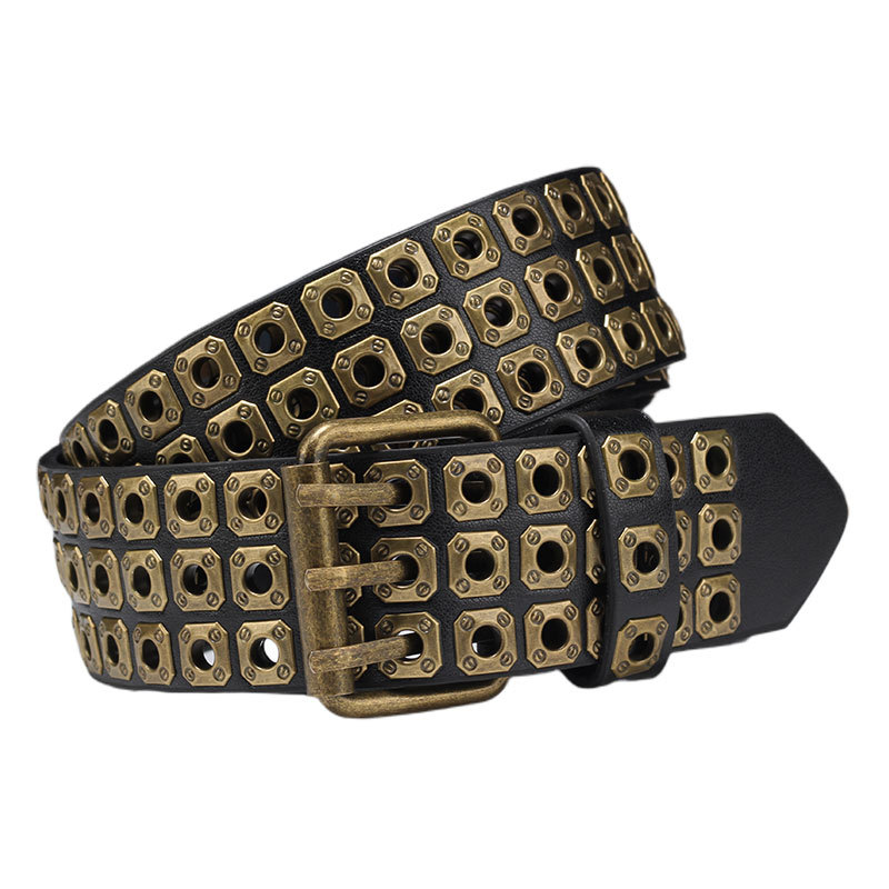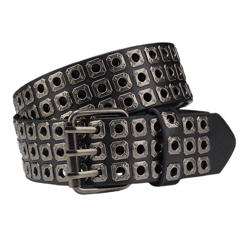 국경을 넘나드는 유럽, 미국 및 아시아 문화 중공 사각형 리벳 에어 아이 레트로 펑크 록 벨트 벨트 남성 및 여성 바지 벨트 유행