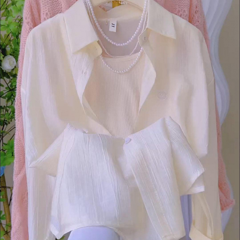 2025 여름 부드럽고 달콤한 핑크 플리츠 셔츠 탑 여성 루즈 캐주얼 폴로 칼라 얇은 자외선 차단 셔츠스토어 가기