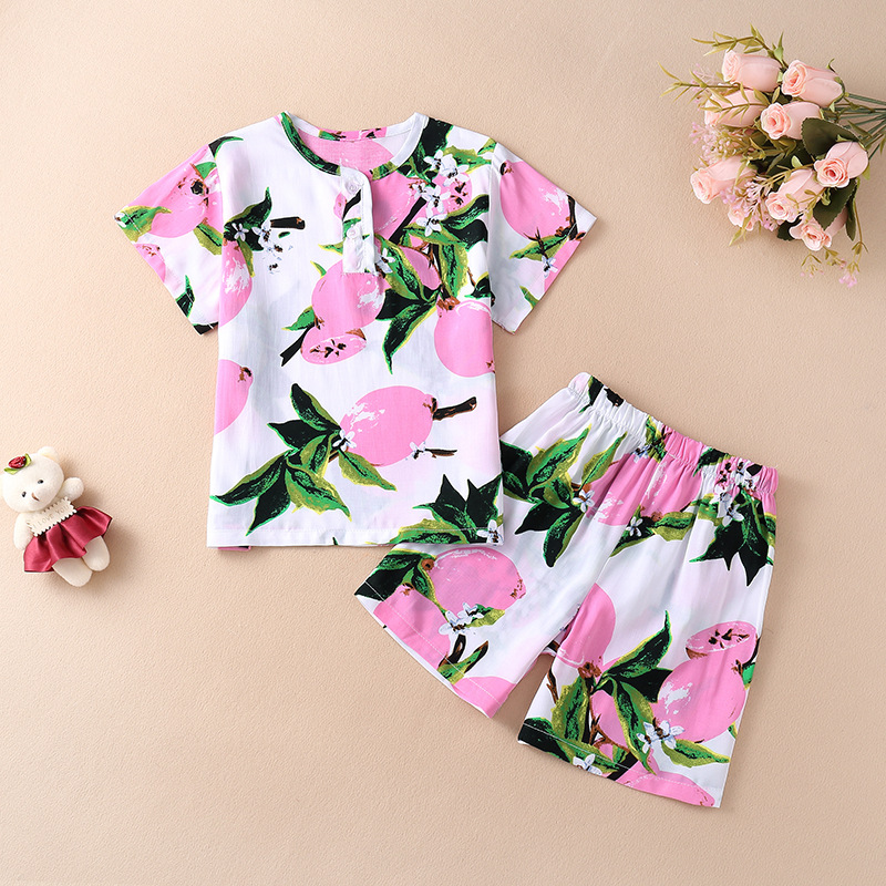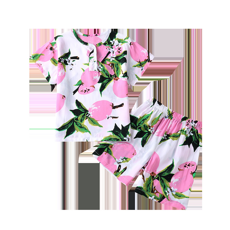 소년과 소녀를위한 여름 어린이 면화 실크 잠옷 아기 면화 실크 어린이 여름 소녀 에어컨 가정 의류 세트스토어 가기