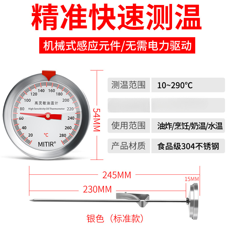 오일 온도 온도계 오일 온도계 주방 상업용 액체 식품 온도계 베이킹 및 튀김 온도계 오일 온도계