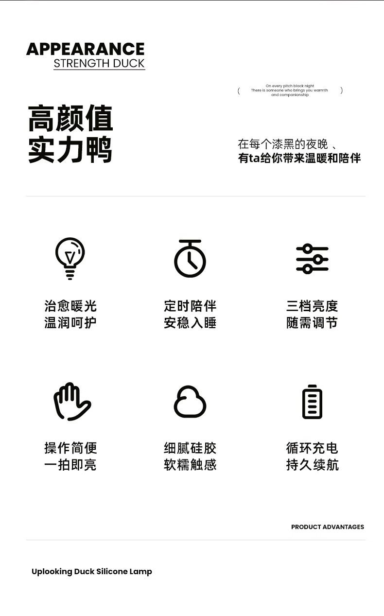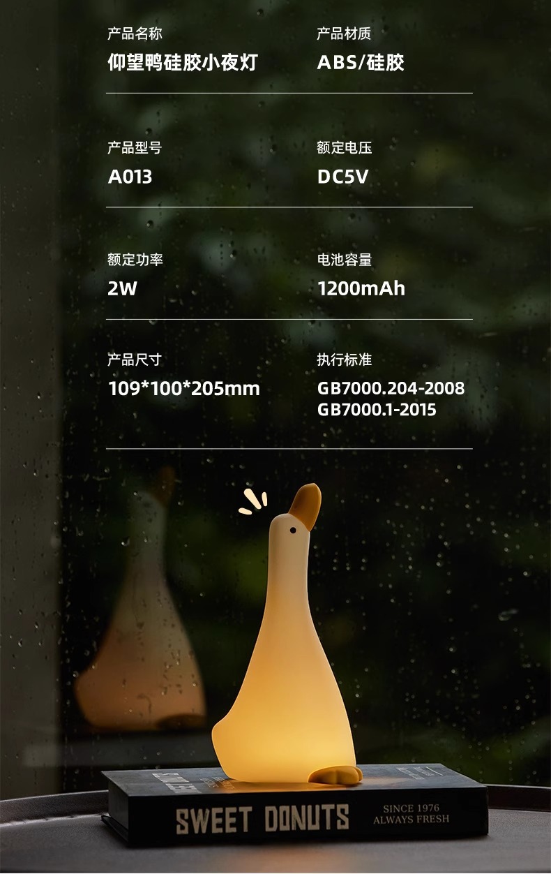 새로운 스타일의 오리 눈 보호 실리콘 램프, 야간 조명, 침실 머리맡 램프, 어린이 선물, 타이머 분위기 조명