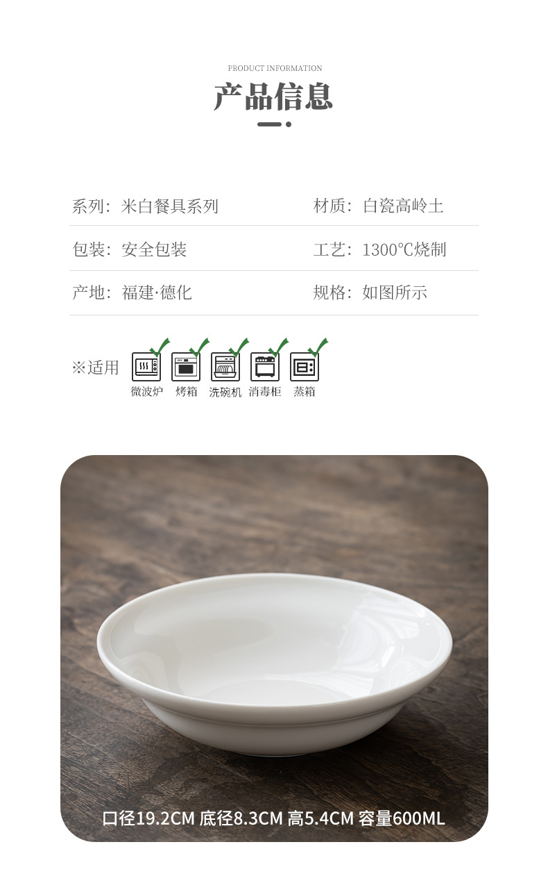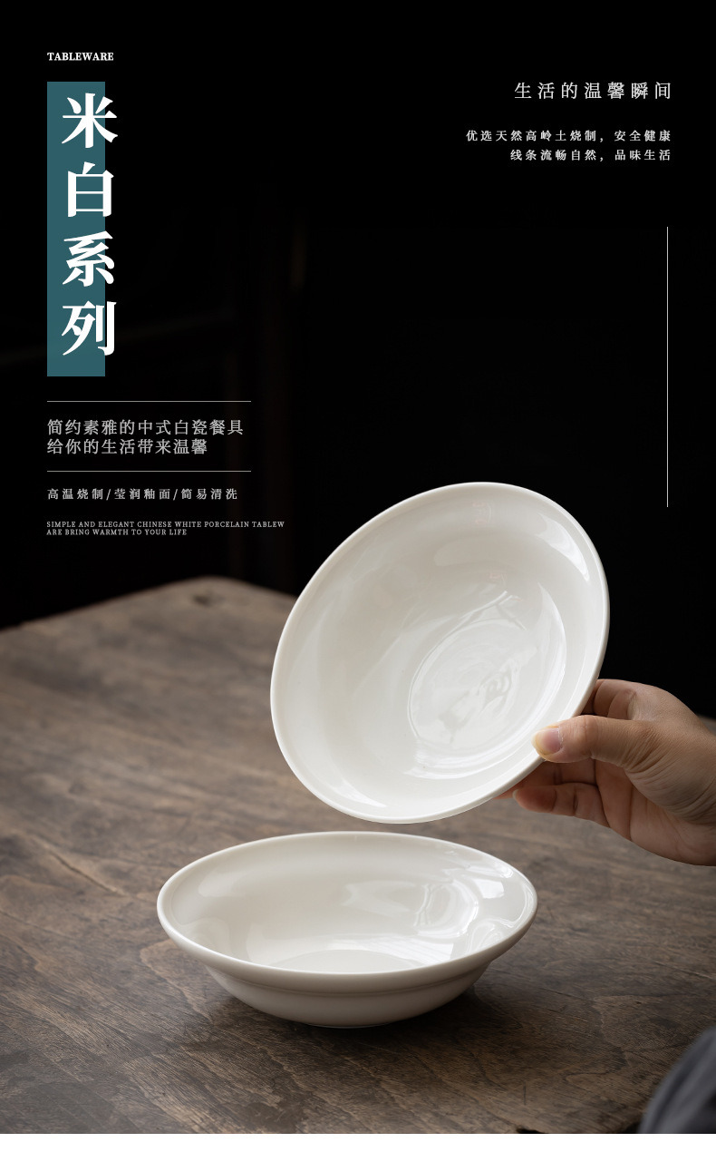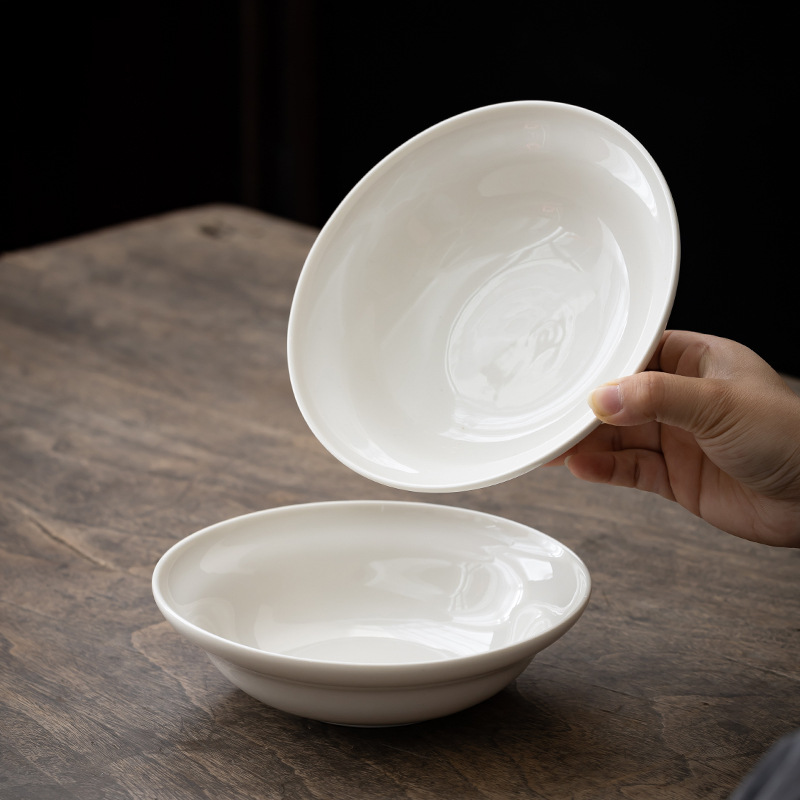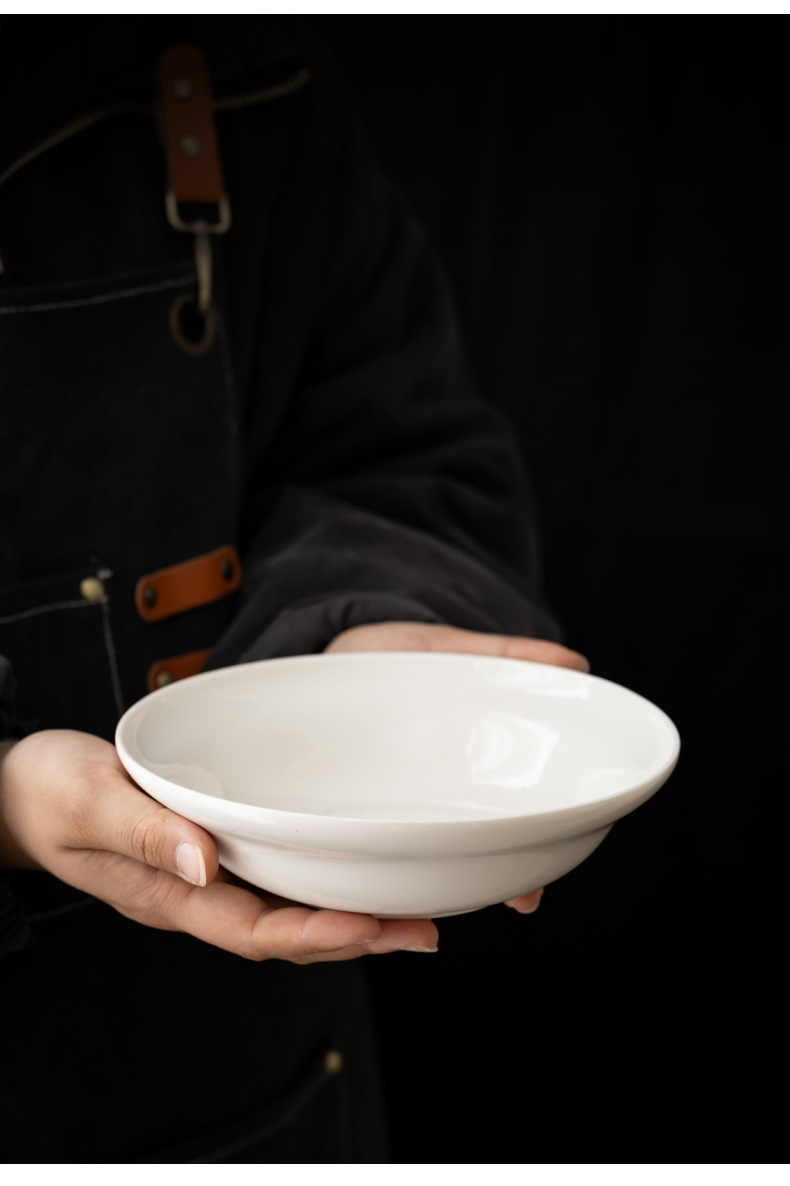[오프화이트] Dehua 백자 UFO 수프 접시 7.5inch 세라믹 볶음 접시 600ml 샐러드 접시스토어 가기