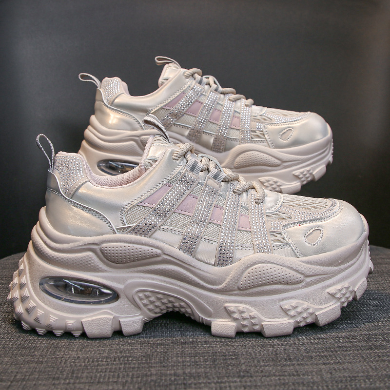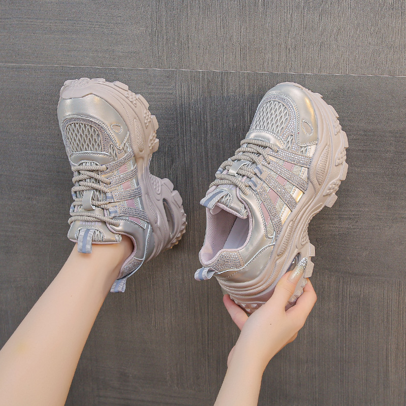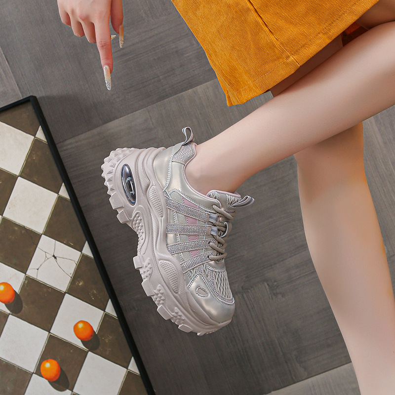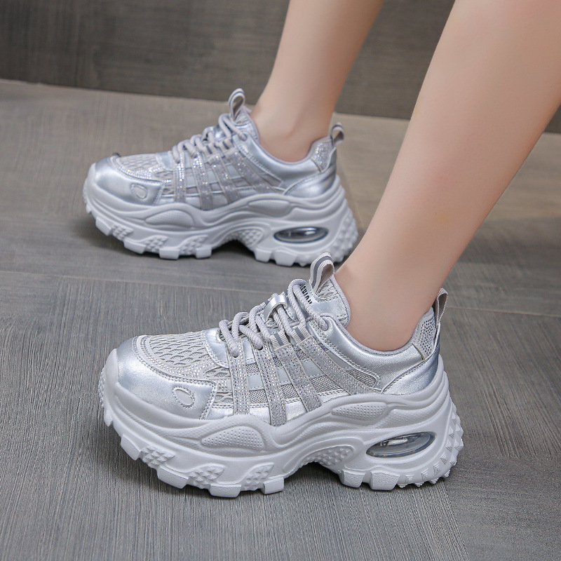 여성을위한 작은 플랫폼 메쉬 통기성 아빠 신발 2025 여름 새로운 스타일 7cm 패션 다목적 에어 쿠션 캐주얼 여성 신발스토어 가기