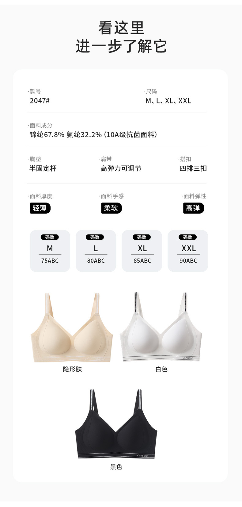 동백꽃 향기 소프트 서포트 레터 스트랩 무봉제 여성용 여름 얇은 푸쉬업 노와이어 브라스토어 가기