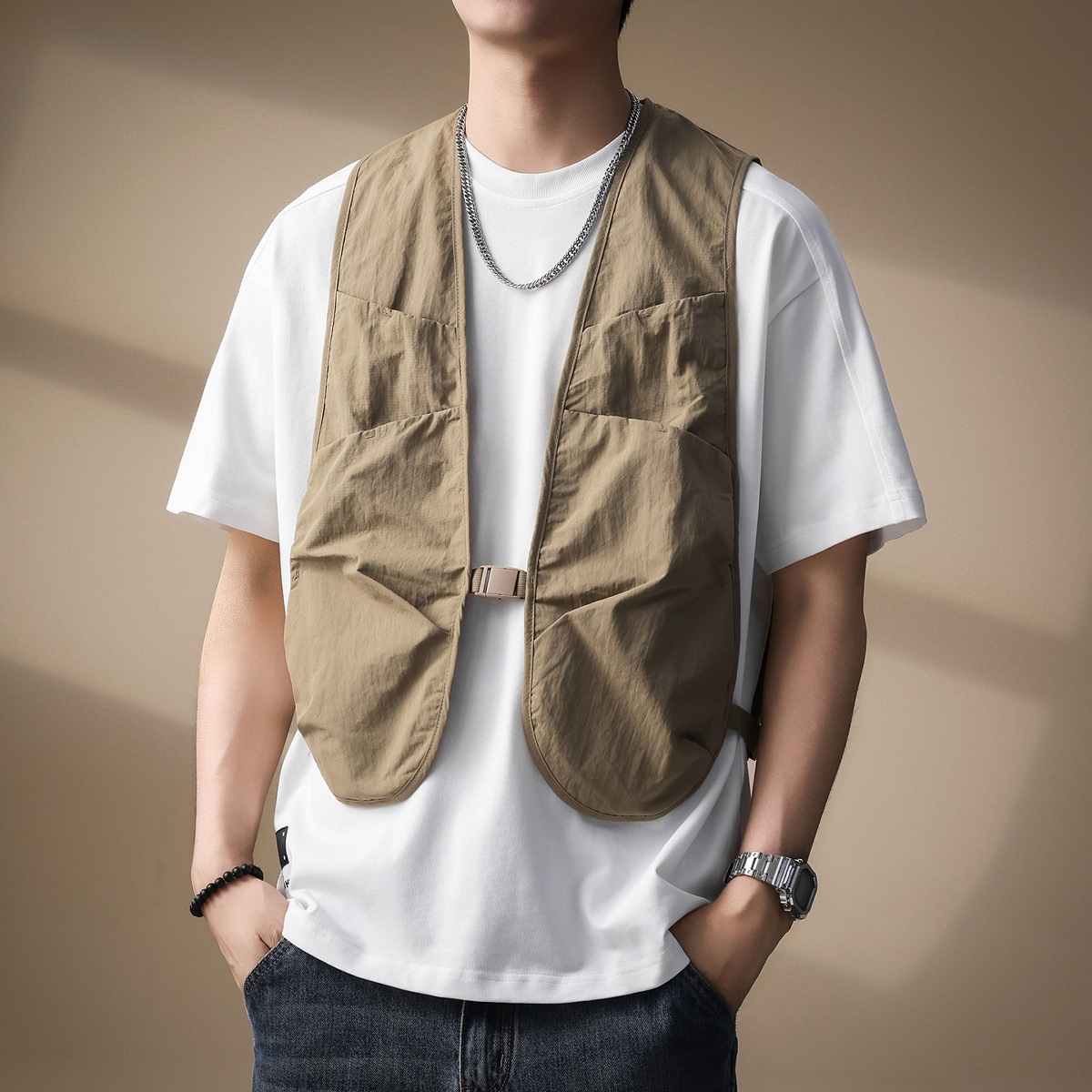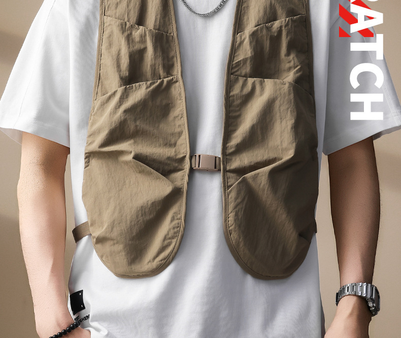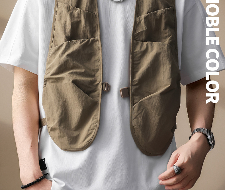 남성용 하이 엔드 야외 멀티 포켓 작업 조끼 남성용 여름 새로운 스타일 경량 속건성 사진 낚시 및 등산 조끼