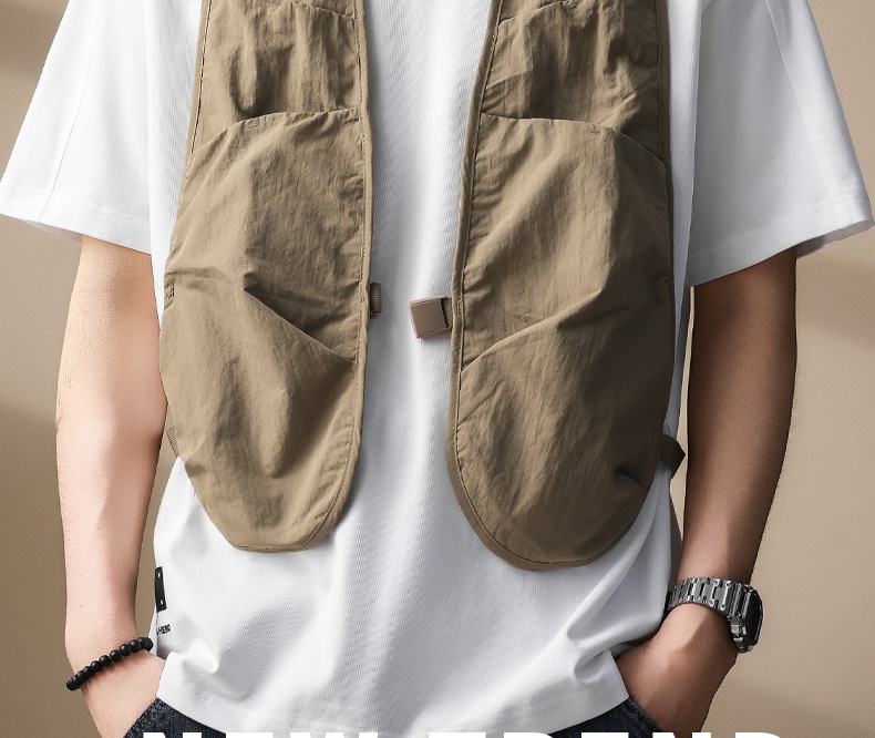 남성용 하이 엔드 야외 멀티 포켓 작업 조끼 남성용 여름 새로운 스타일 경량 속건성 사진 낚시 및 등산 조끼스토어 가기