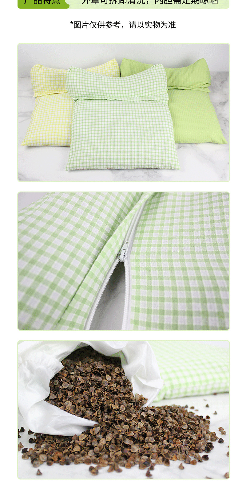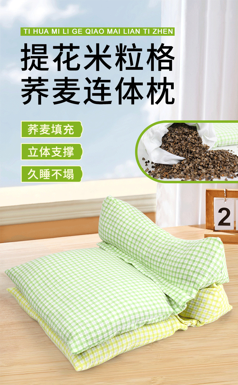 • 【노란 쌀알 격자】 메밀 삼각 일체형 베개