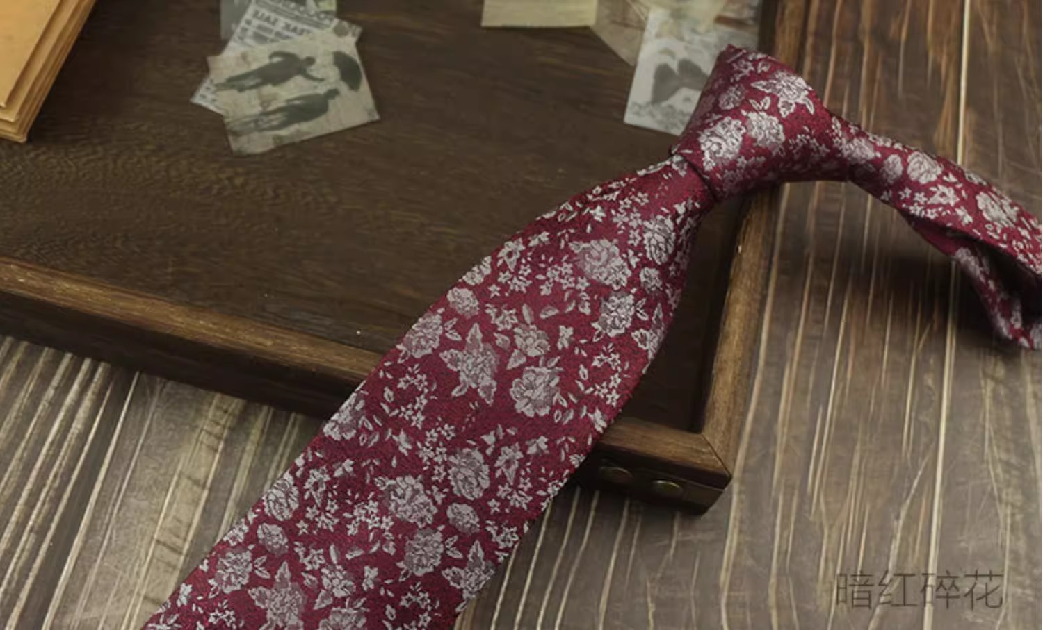 • 다크레드 플로럴 + 포켓스퀘어 [선물박스]
