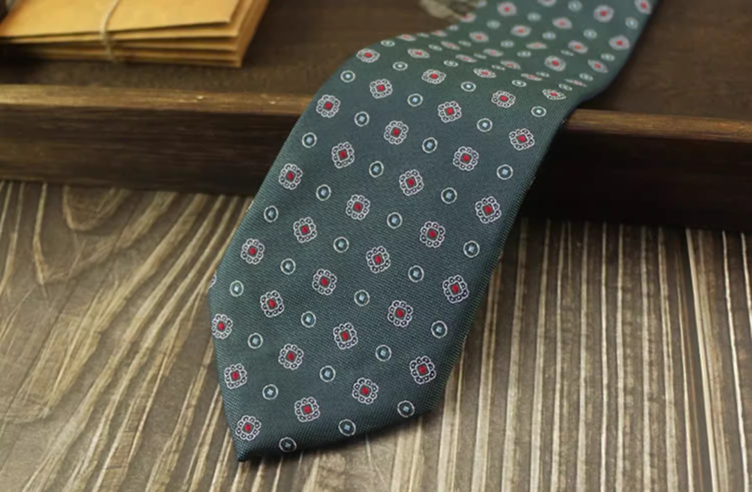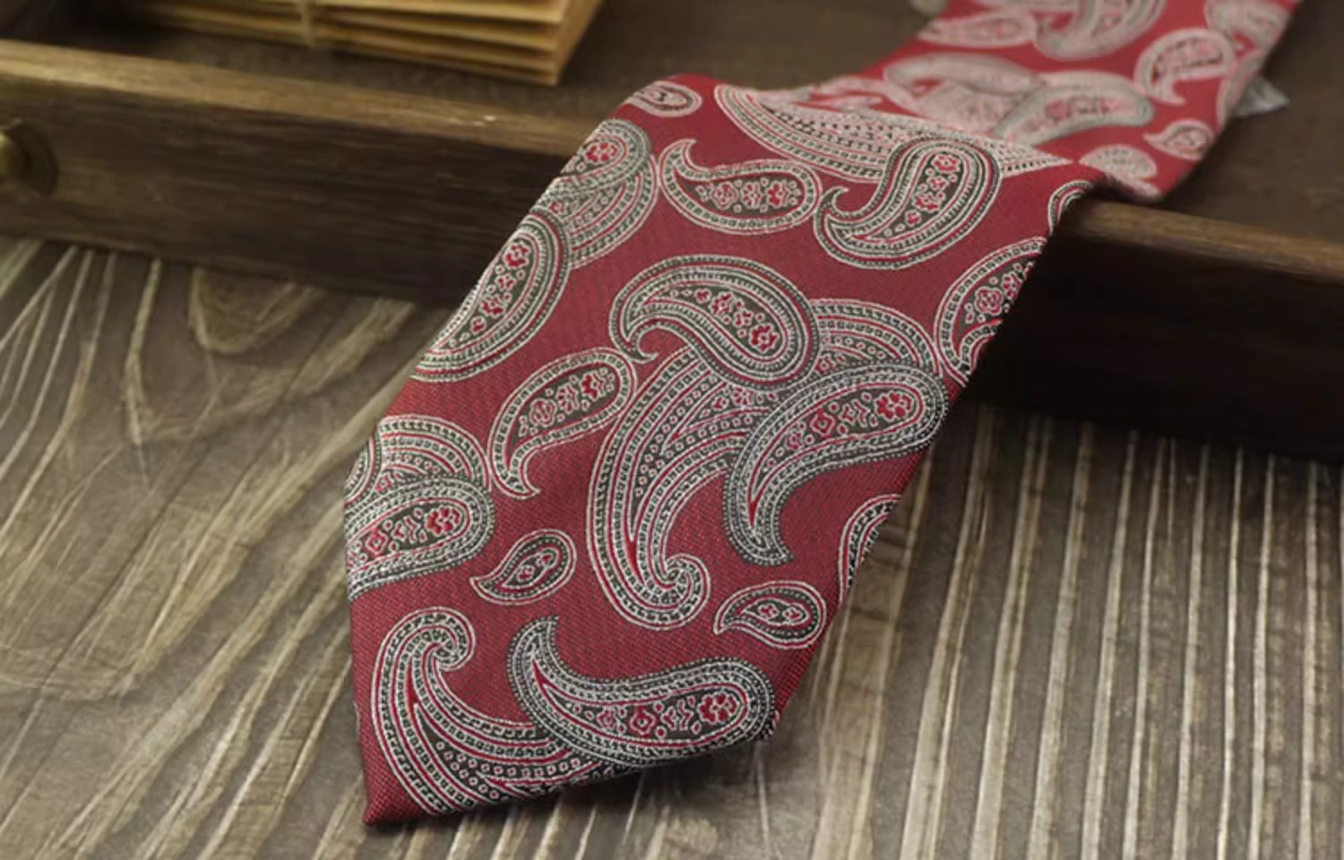 • 진한 빨간색 패턴 + 포켓 스퀘어 [선물 상자]