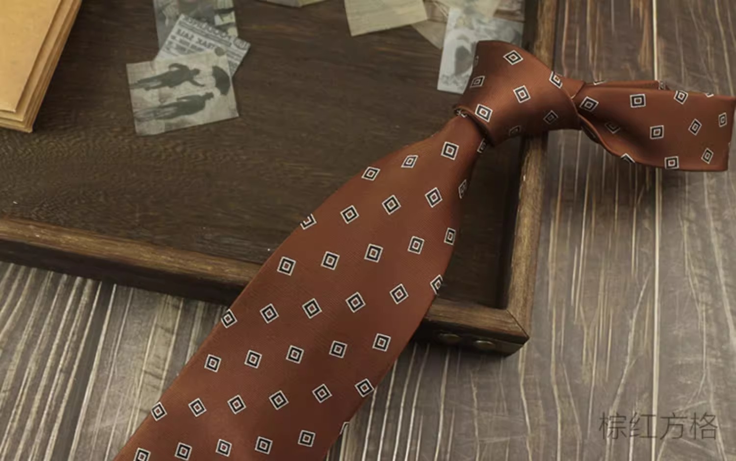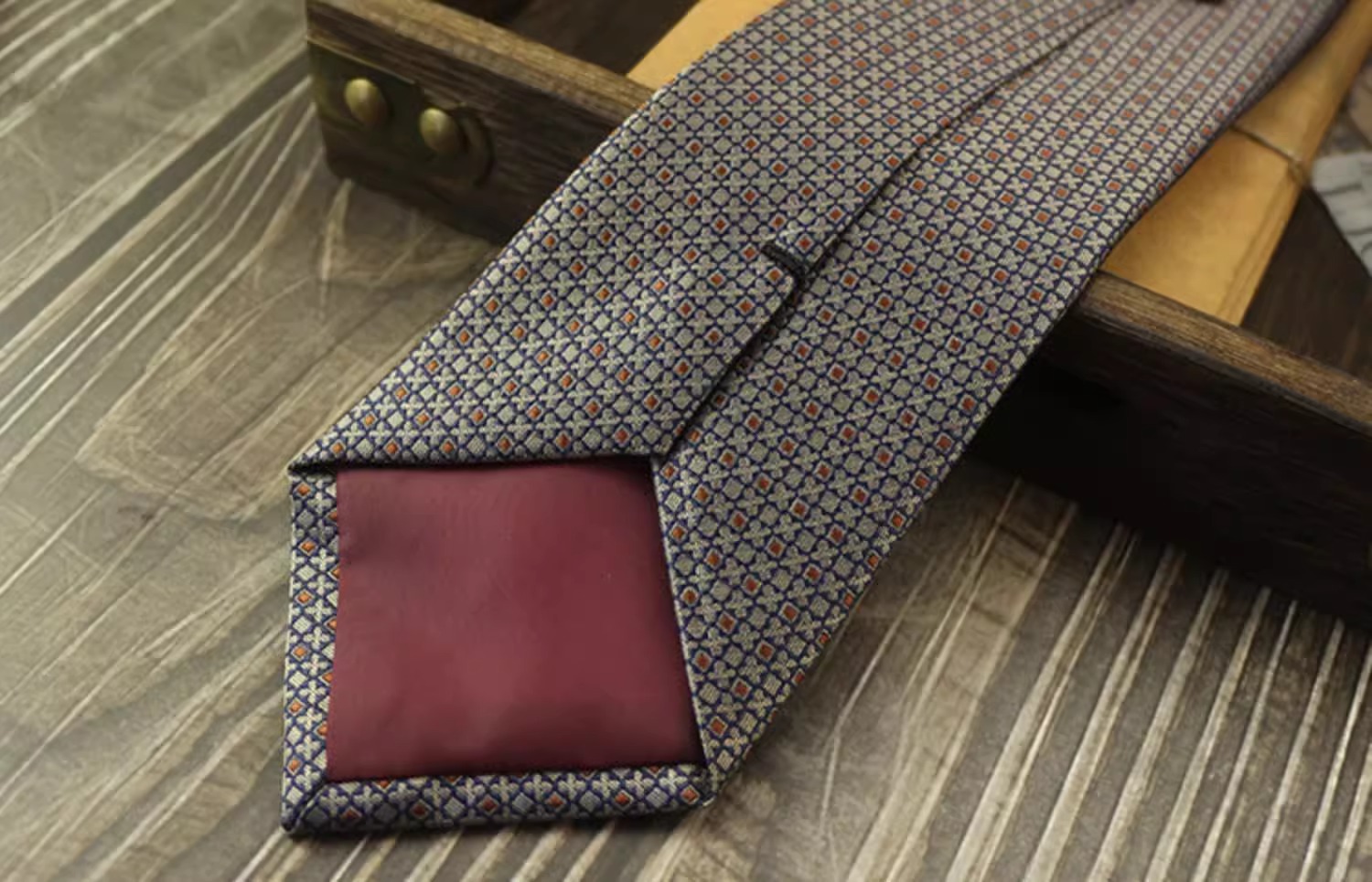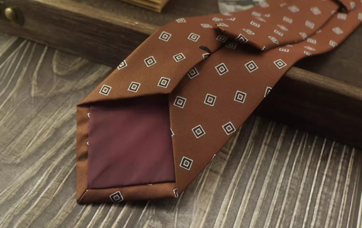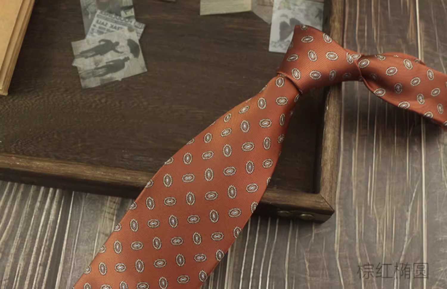 • 브라운 레드 타원형 + 포켓 스퀘어 [선물 상자]