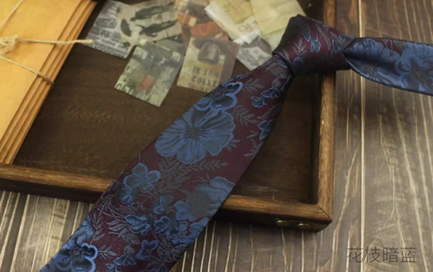 • 꽃가지 다크블루 + 포켓스퀘어 [선물박스]