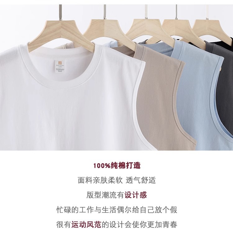 헤비급 240g 순면 조끼 남성용 조끼 루즈하고 통기성이 뛰어나며 심플한 캐주얼 민소매 티셔츠 스포츠 피트니스 여름