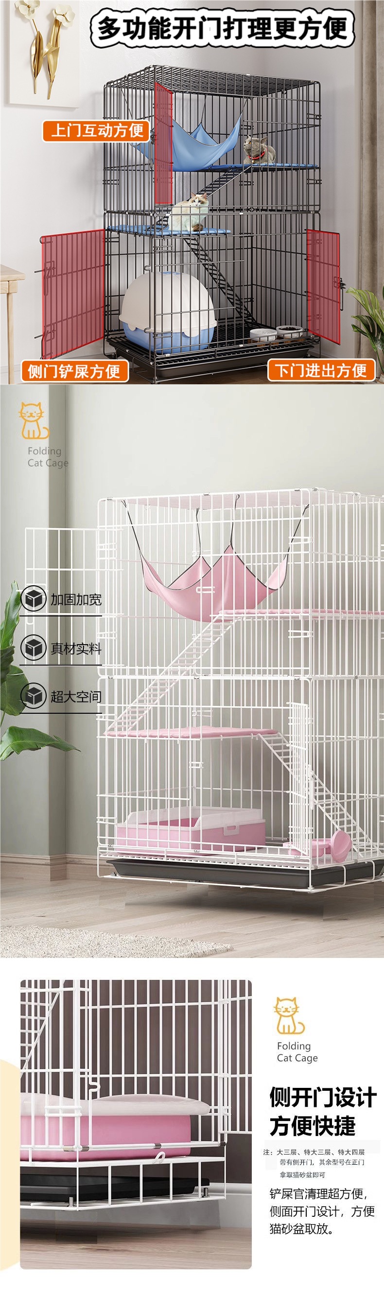 • 블랙 - 특대형 더블 레이어 85*60*70 [성묘를 위한 넓은 공간에 적합]