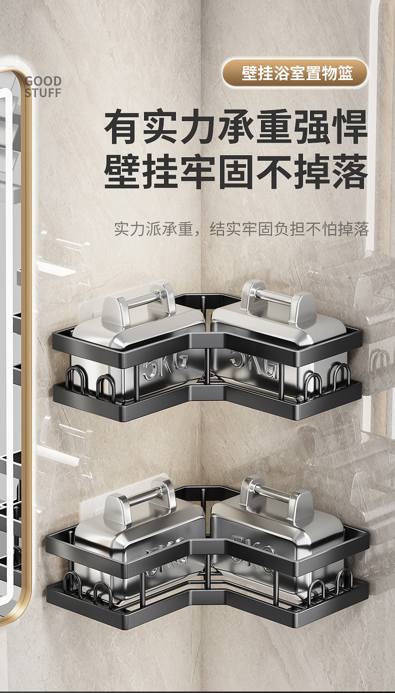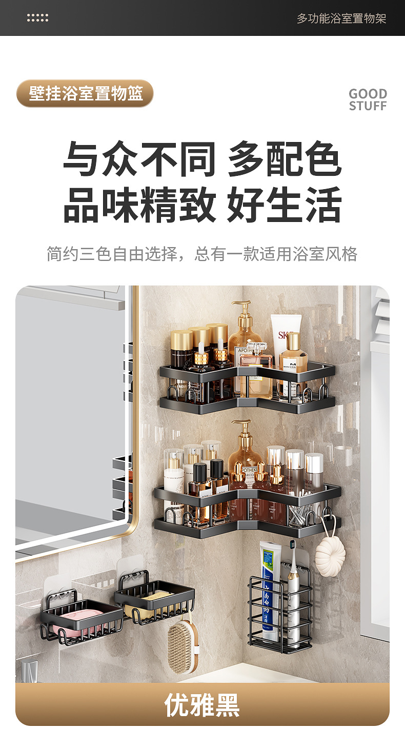 욕실 수납 선반, 욕실 벽걸이형 펀치 없는 수납 선반, 5종 세트, 욕실 벽 수납 선반스토어 가기