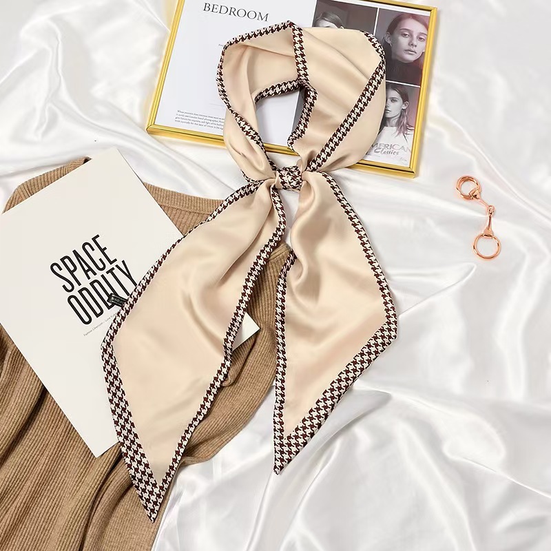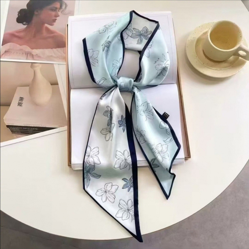 2025 새로운 긴 실크 스카프 한국어 버전 인쇄 기질 스카프 여름 패션 장식 대각선 스카프 공장 도매스토어 가기