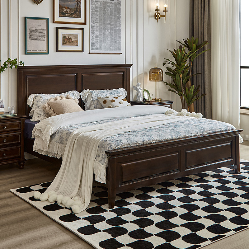미국 컨트리 순수 원목 침대 마스터 침실 더블 1.5m 라이트 럭셔리 심플 모던 블랙 호두 색상 하이 박스 수납 침대스토어 가기