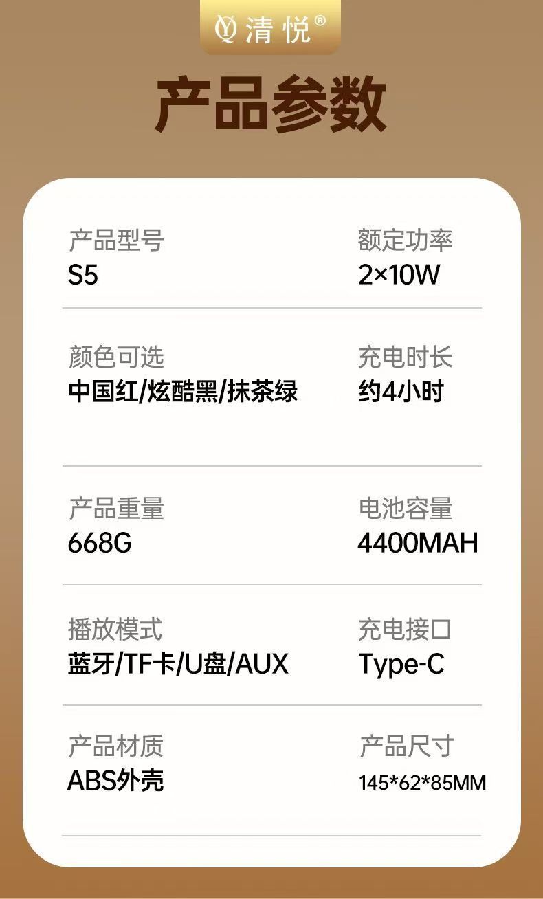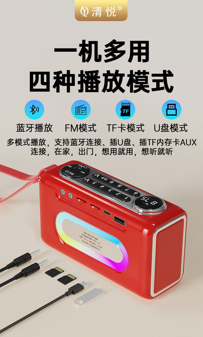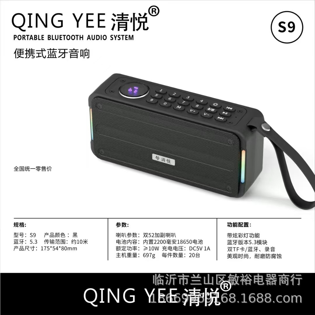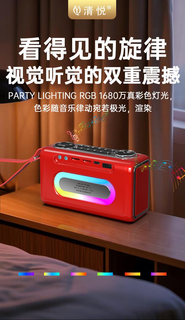 Qingyue S5 휴대용 무선 블루투스 스피커 서브우퍼 데스크탑 시리즈 고품질, 긴 배터리 수명, 분위기 있는 조명 및 사운드스토어 가기