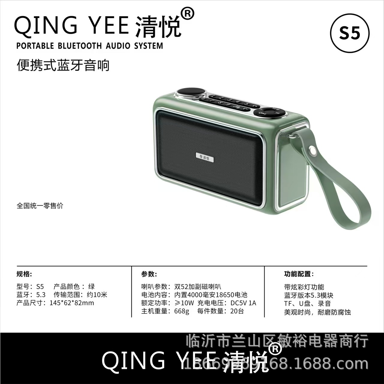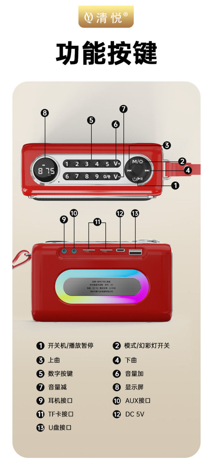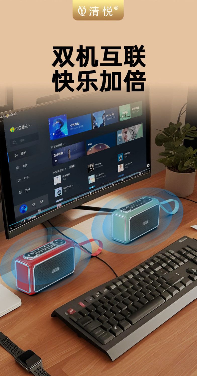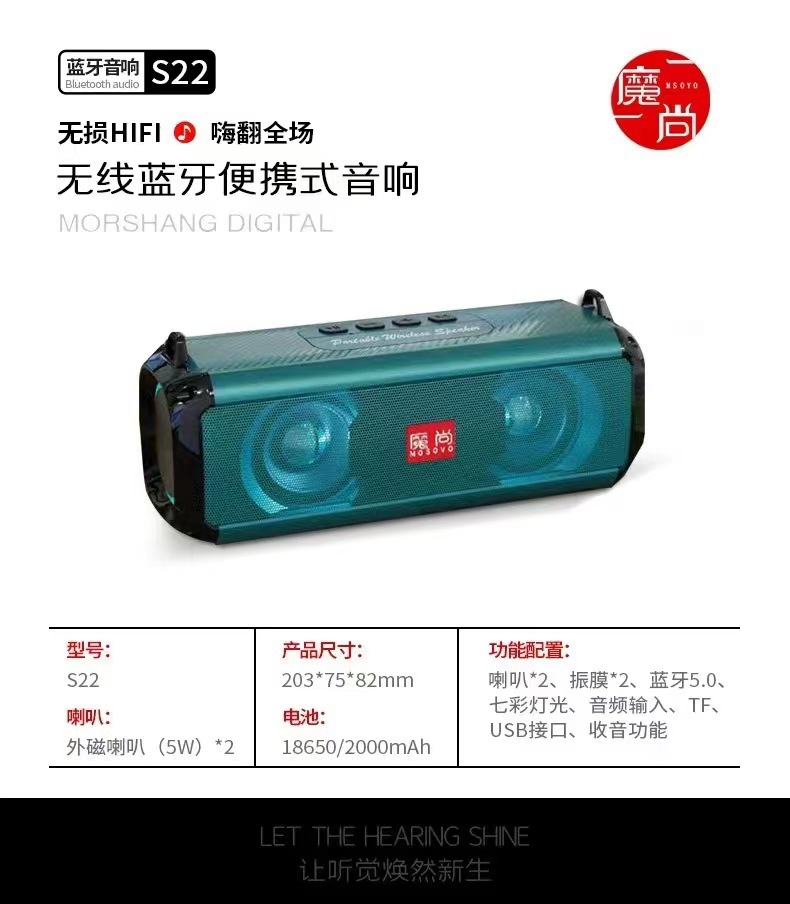 Qingyue S5 휴대용 무선 블루투스 스피커 서브우퍼 데스크탑 시리즈 고품질, 긴 배터리 수명, 분위기 있는 조명 및 사운드스토어 가기