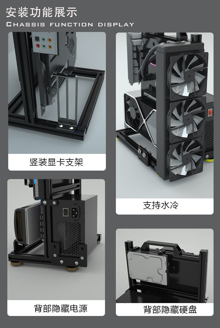 오픈 섀시 랙은 240 360 수냉식 X79 X99 듀얼 채널 ITX MATX 크리에이티브 섀시를 지원합니다.스토어 가기
