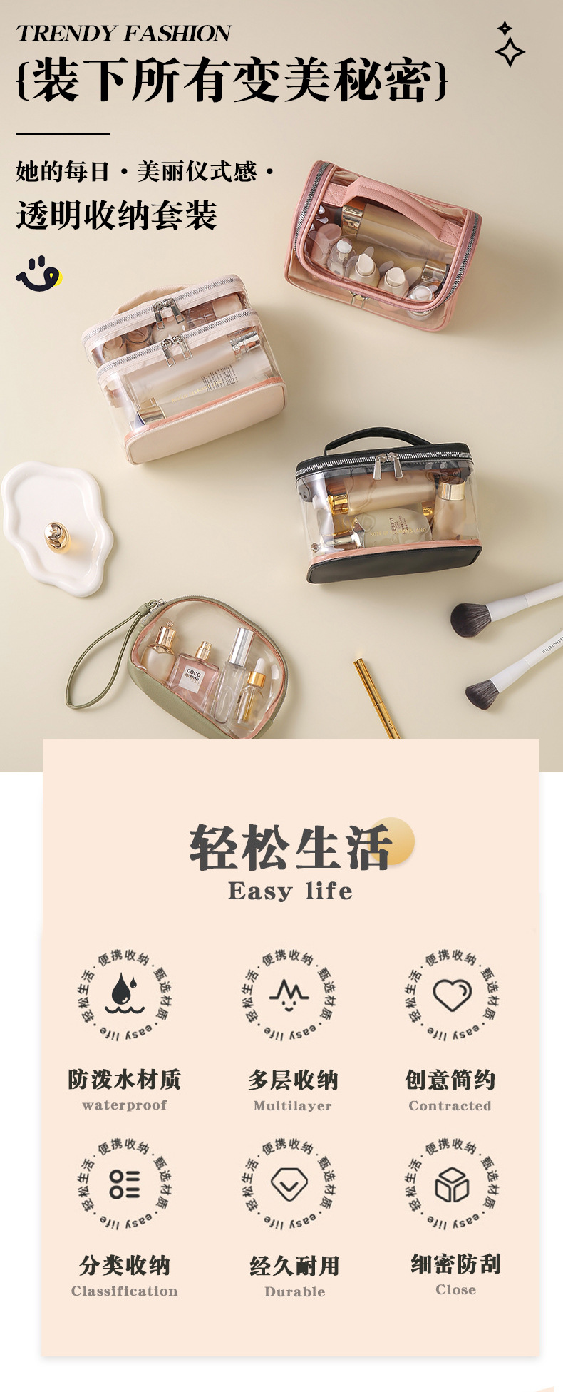 새로운 투명 화장품 가방 PVC 여행 세면 용품 가방 고급 방수 대용량 휴대용 저장 가방 휴대용
