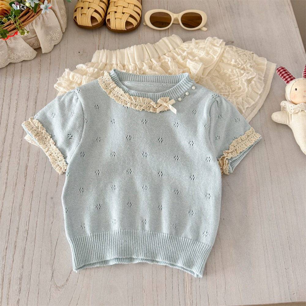 [리틀솔트레몬] 여아 스위트 슈트 니트 반팔 티셔츠 레이스 여아 케이크 스커트 투피스 세트