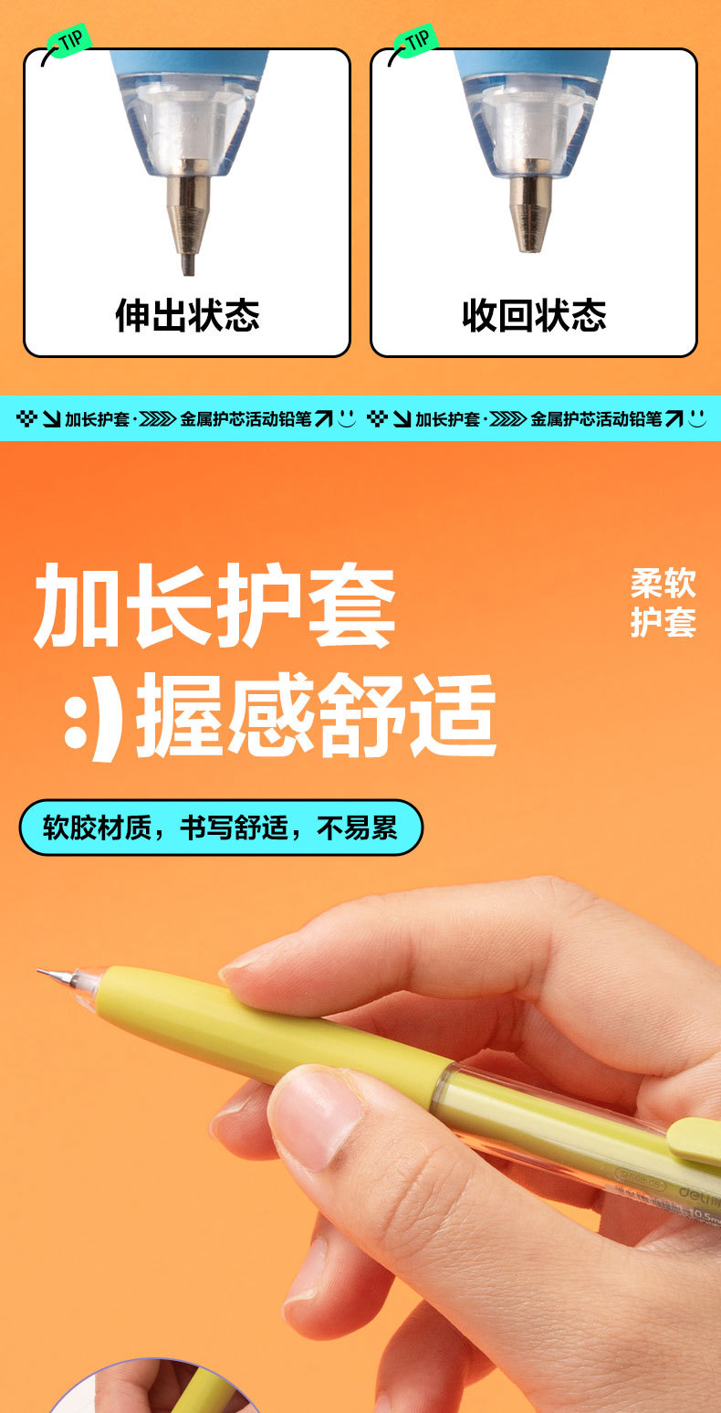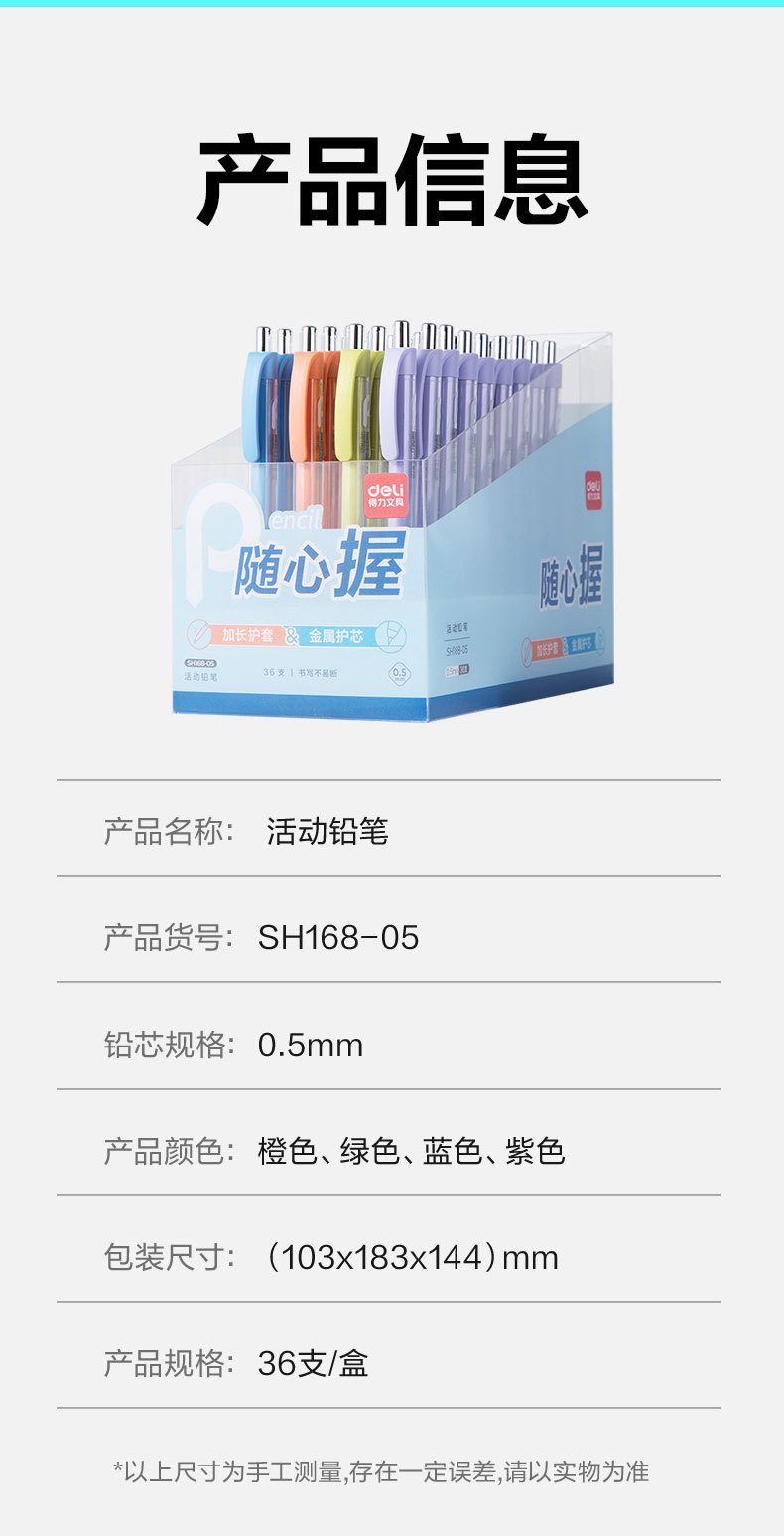 델리 SH168 샤프 펜슬 간단한 초등학생 자동 연필 쓰기 연필 0.5mm/0.7mm 자동 펜스토어 가기